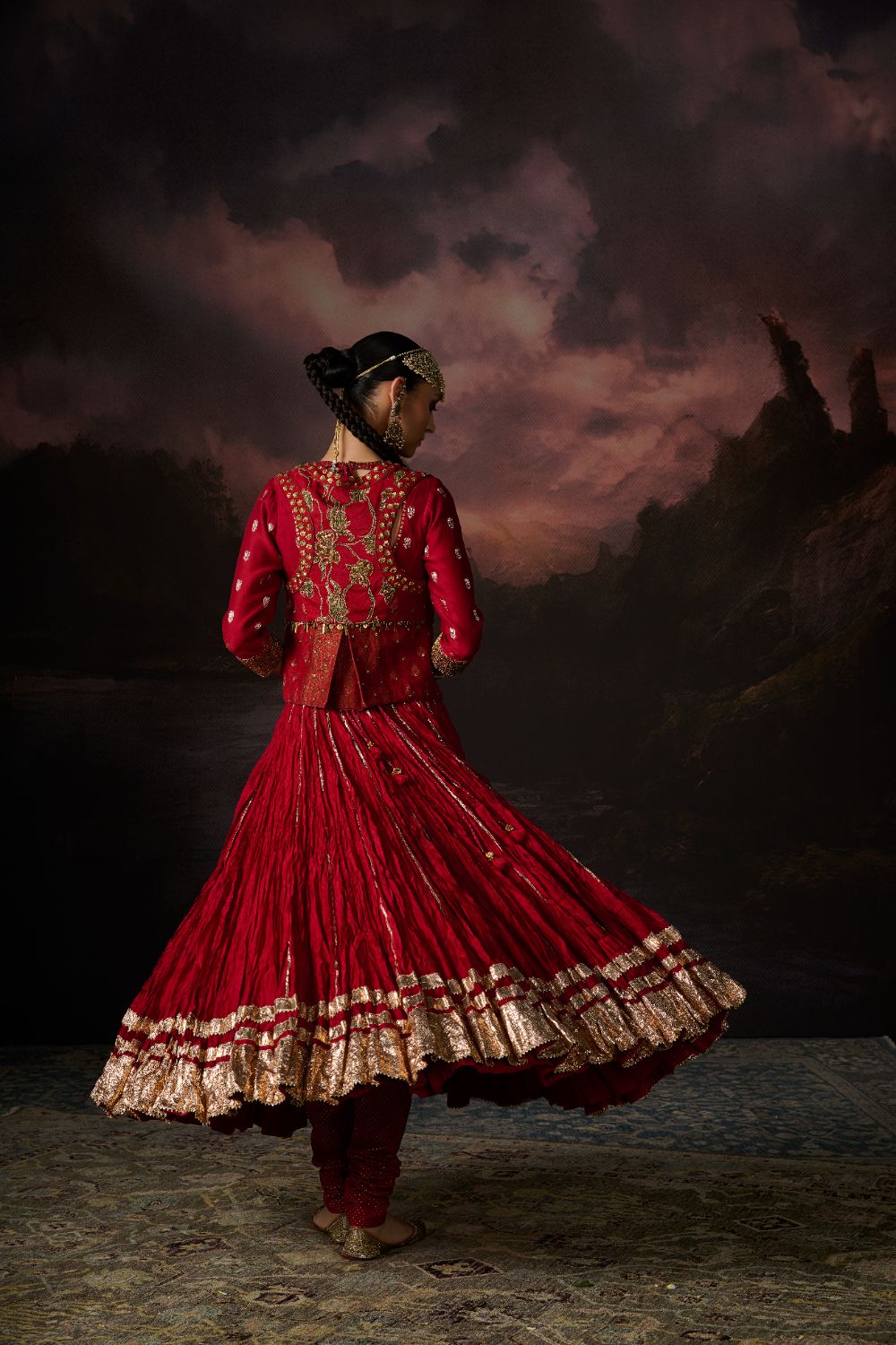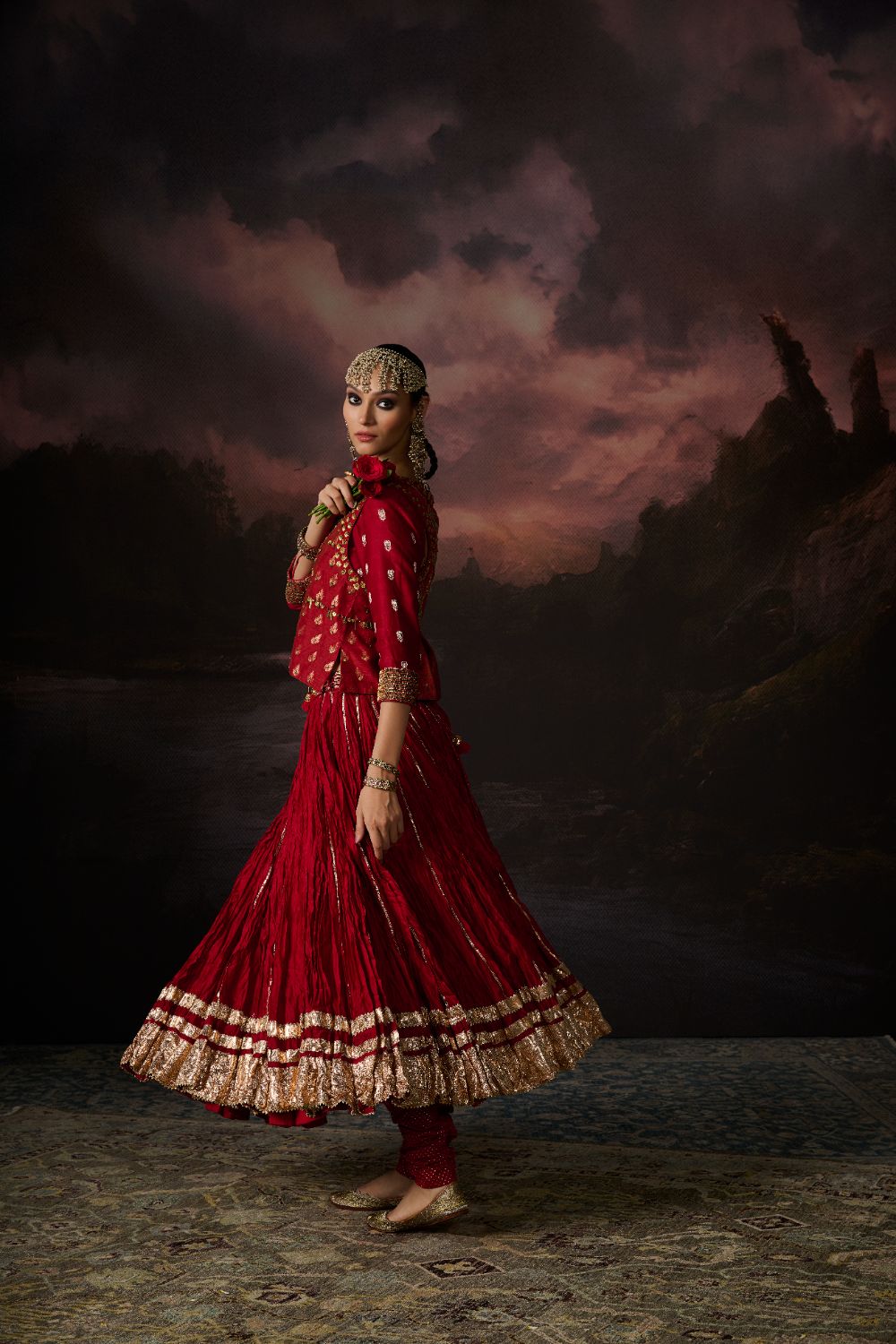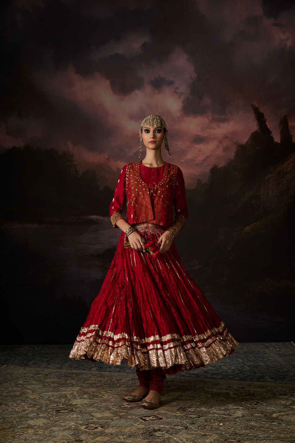 Handwoven Chanderi 60gm Ankle-Length Skirt with Gota Detailing at Hem, Belt, and Kali Seams