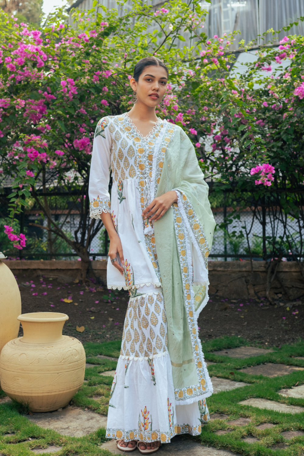 Inspired by the richness of the mogra is our collection of florals handcrafted on an ivory base of handspun cotton Mul, Kota Doria and Chanderi. Finished with delicate laces invoking summer in its true essence.