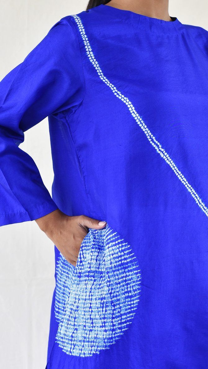 Royal Blue Silk Shibori Kurta Fashion Medium