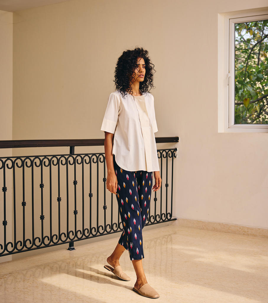 Shades of Ikat Pants linen by Khara Kapas in blue for women in Singapore