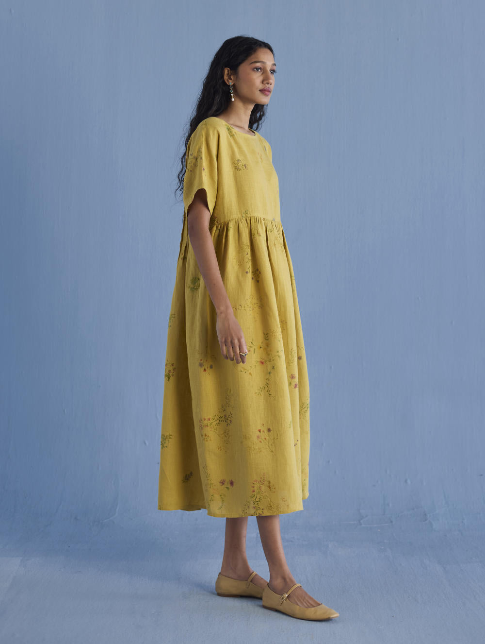 A timeless and easy-to-wear soft sheer linen dress designed with a soft timeless hand-painted floral print, pockets and intricate pleat details at the back for easy movement and style. The dress can be worn over any plain linen or cotton dresses that are part of your wardrobe. Perfect for balmy summer days.