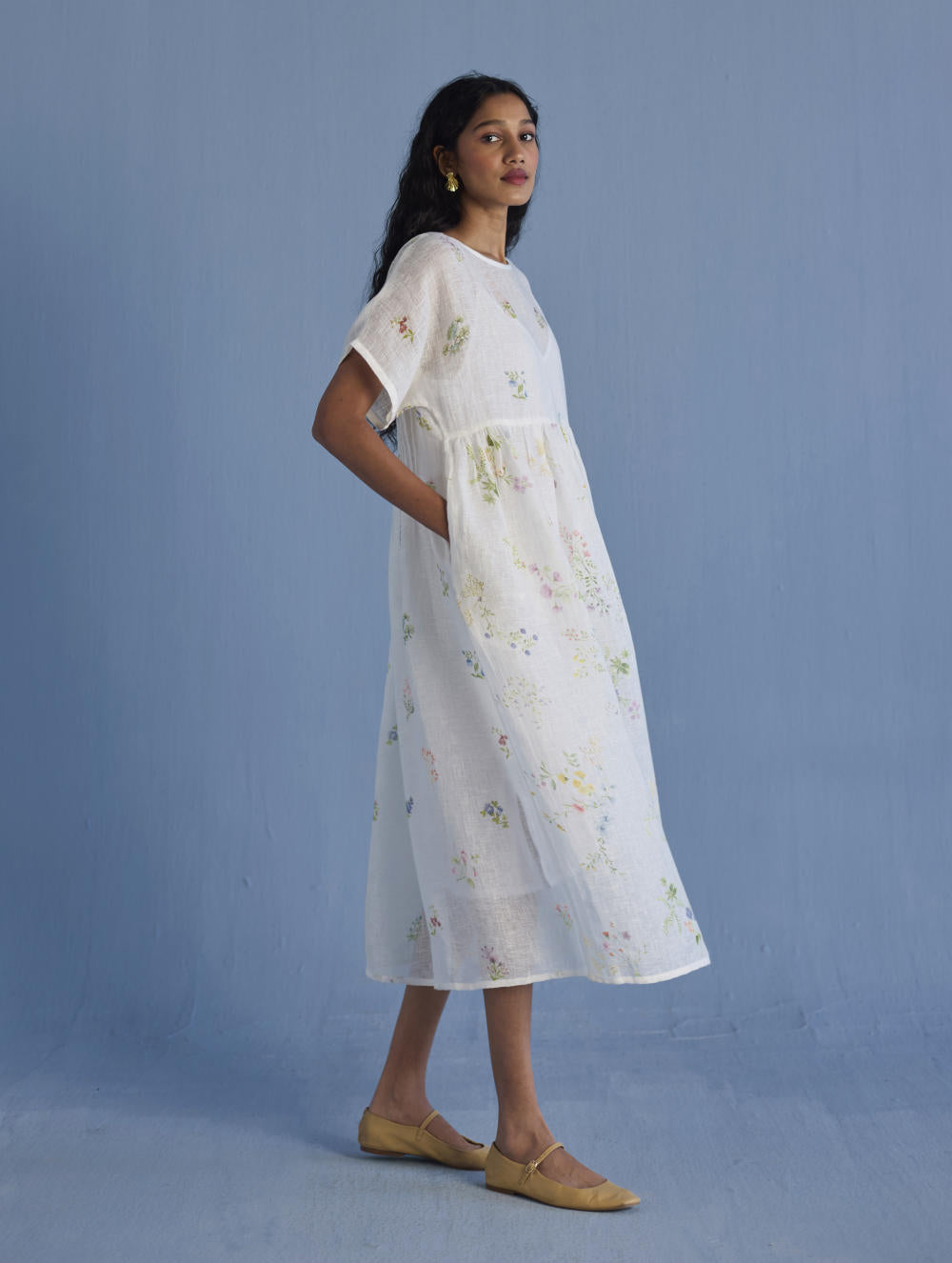 A timeless and easy-to-wear soft yarn-dyed linen dress designed with a soft timeless hand-painted floral print, pockets and intricate pleat details at the back for easy movement and style. The Uniko dress is perfect to wear for busy days running around to days spent lazing around.