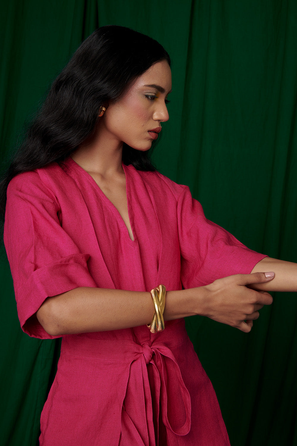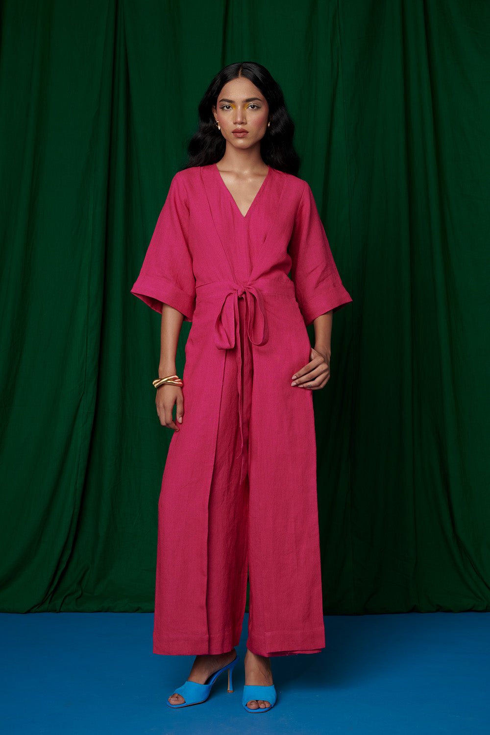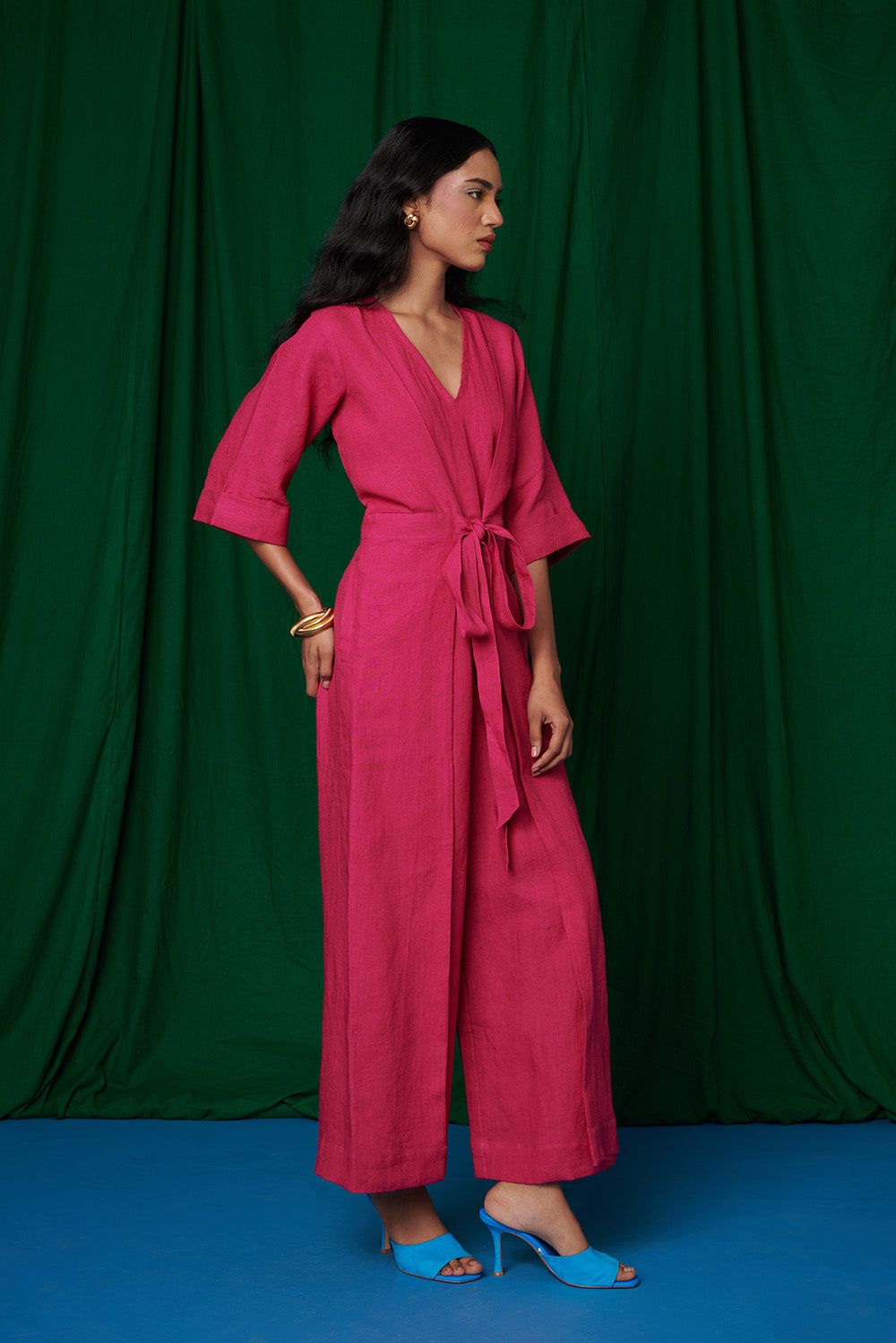 Rani Linen Pleated Wrap Jumpsuit
