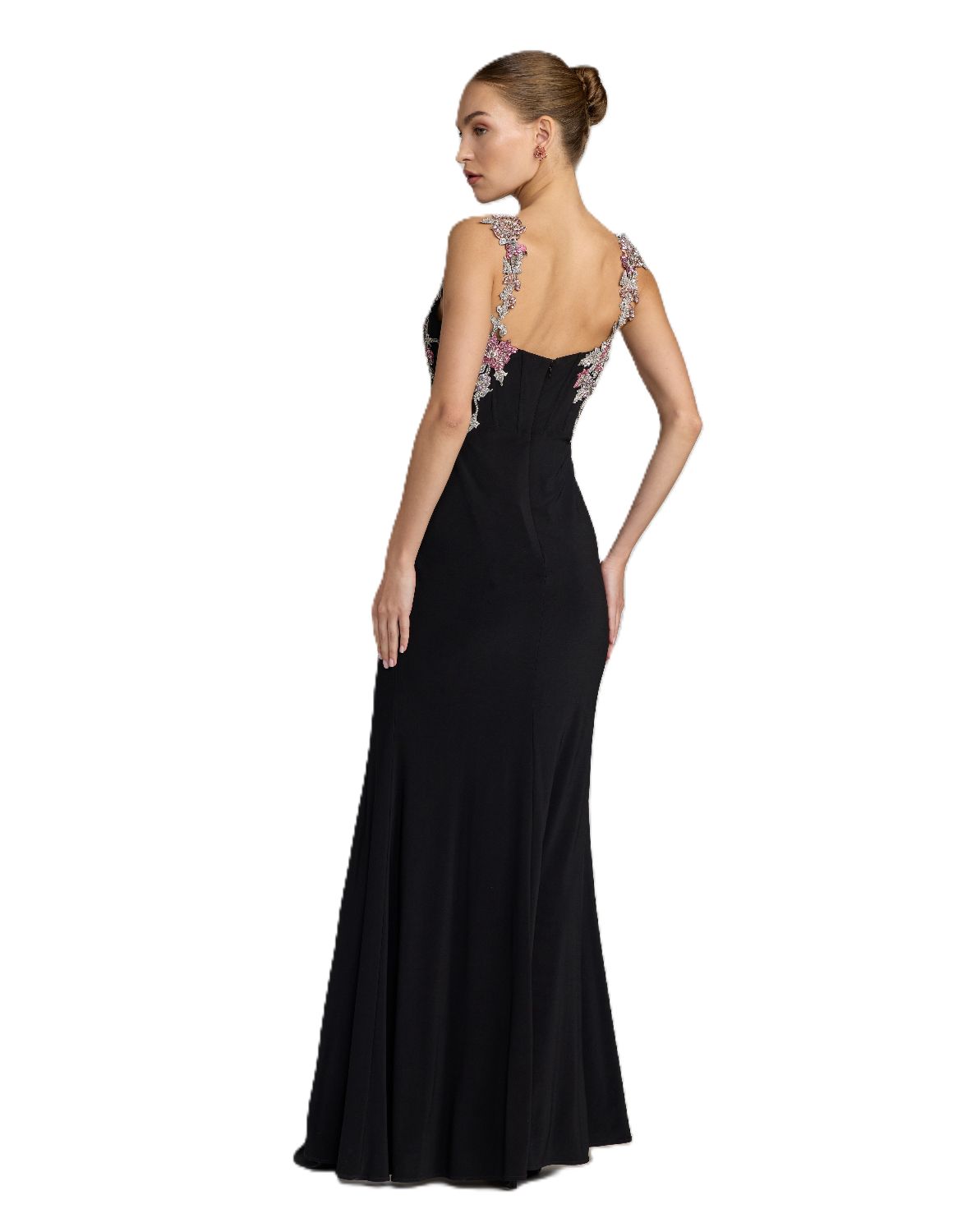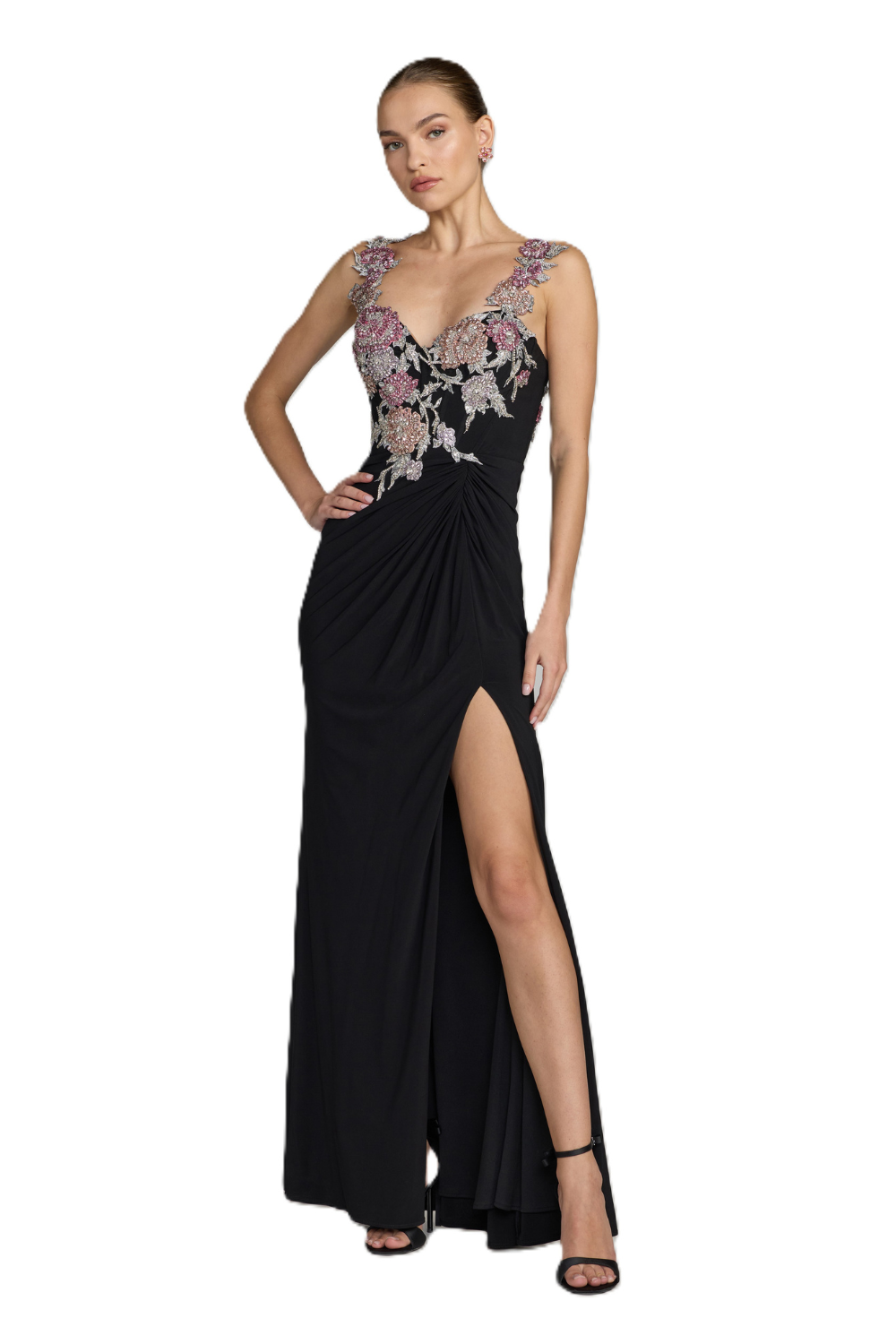 Founded in Chicago by designer Mac Duggal, the label has become a red-carpet language of its own—seen at the Oscars, the Emmys, the Met-adjacent soirées, and the kind of celebrations where the lighting is soft, the music is warm, and the dress needs no introduction. Known for sculpted drapes, sequined textiles, and silhouettes that photograph with cinematic clarity, Mac Duggal designs gowns that balance drama with precision.