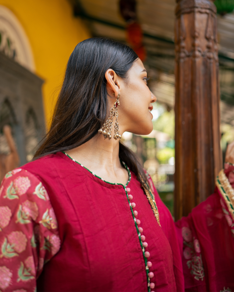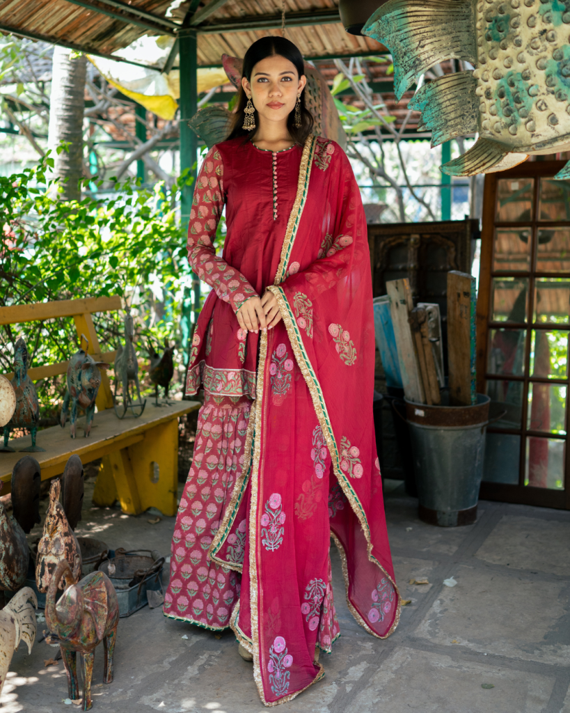 Translating prayer in Persian "Dua" is an amalgamation of our signature block prints, gota patti and classic silhouettes handcrafted on the most delectable base of cotton and Mul Mul.