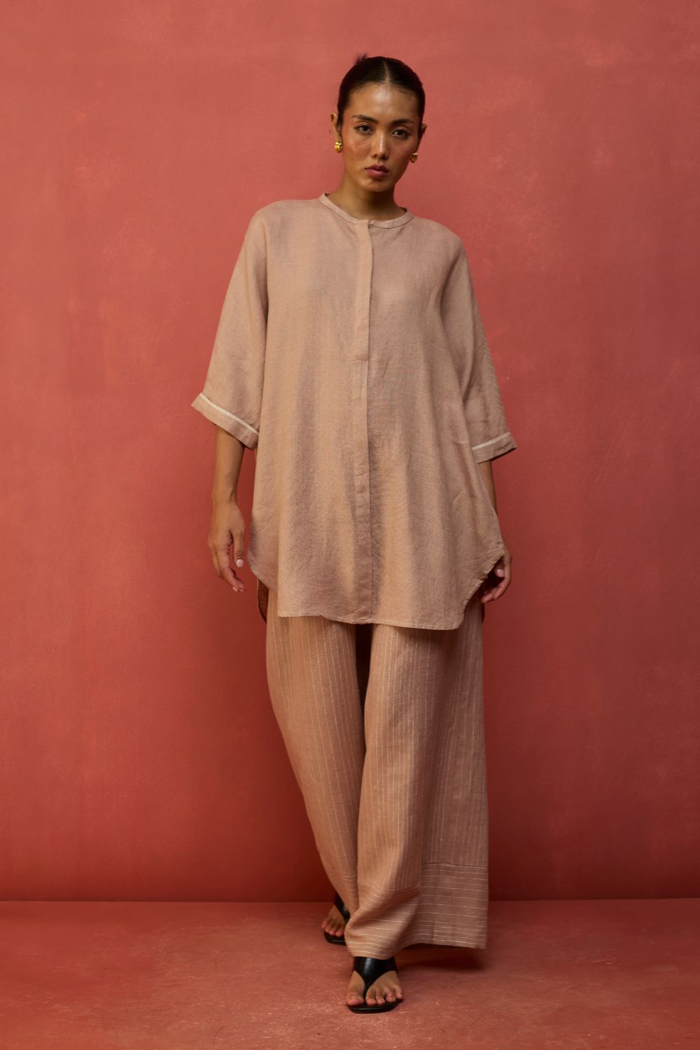 Today, Manan offers womenswear, menswear, dupattas, and jewellery — all shaped by the ethos of slow, contemplative design. Their palette is grounded in natural hues; their silhouettes are soft, balanced, and seasonless. Kurta sets and separates capture a modern Indian aesthetic that travels effortlessly anywhere in the world, while co-ord sets offer longevity and versatility in equal measure. Shirts, dresses, trousers, jackets, and dupattas form a modular wardrobe that encourages personal expression.
