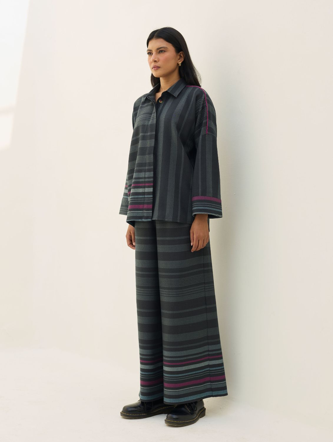 Their signature linens soften beautifully with time, eventually returning to the earth. They work with eri (ahimsa) silk, celebrated for its strength and gentle texture, and craft thoughtful blends of viscose, cotton, silk, and linen for pieces designed to last. Yarn-dyed techniques minimise chemical use and create the subtle, heathered tones that have become a quiet Manan signature.