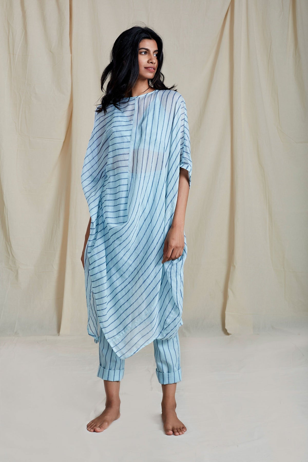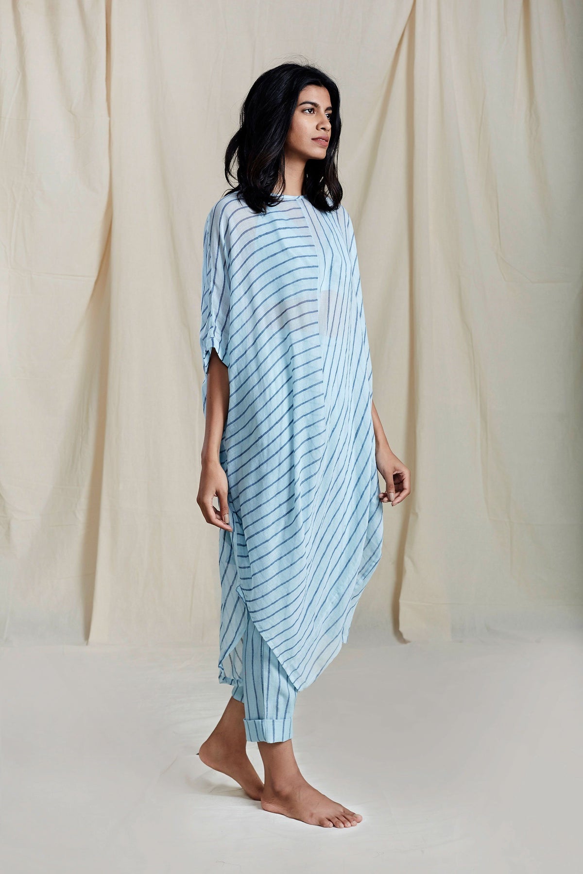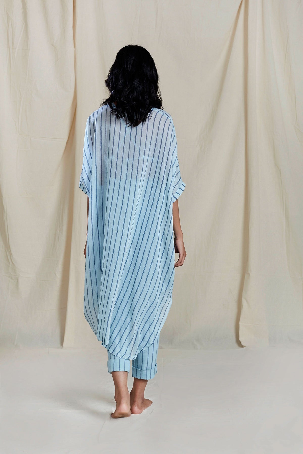 Yet another of our beautiful draped cowl silhouette !! the stripe on mal giving it a soothing and nautical feel !! A perfect pick for your resort and cruise holidays this summer !! Buy the whole set here with the inner bralette and pants.
