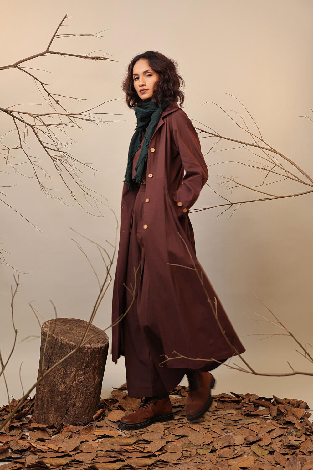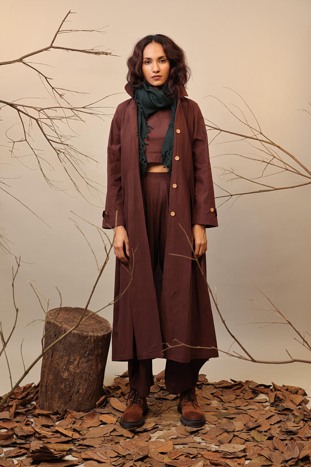 Brown Cali Trench Jacket Set (3 PCS)