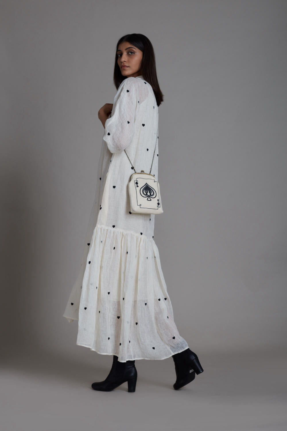 This easy and comfortable pure linen heart dress is all you need for an effortless look.It is adorned with hand embroidery, crafted in soft and rich fabrics and this comes with a full length inner.