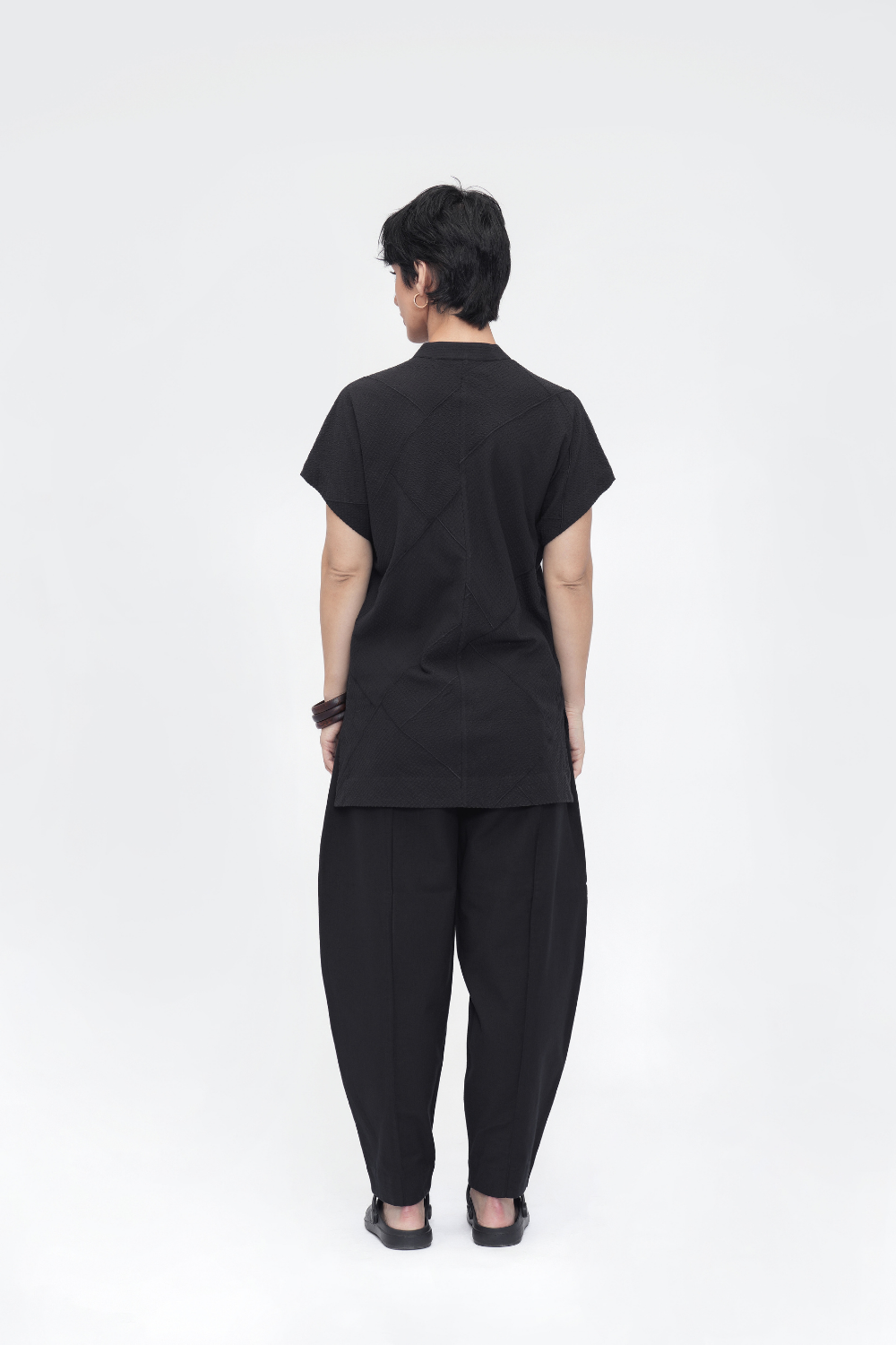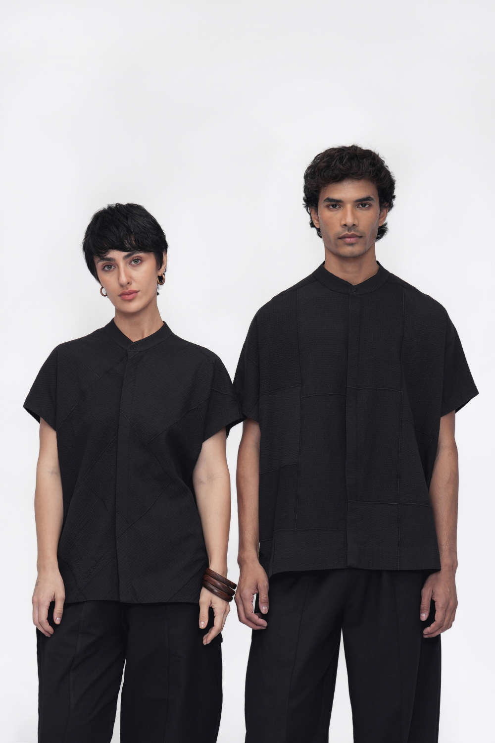 A relaxed unisex shirt in an oversized silhouette, crafted from intricately embroidered patchwork fabric. Features a band collar, drop shoulders, French placket, and side slits—where structure meets texture, and craft meets ease. Shirt Comes in Size: ONE (2XS,XS,S), TWO (M,L,XL), THREE (2XL,3XL,4XL)