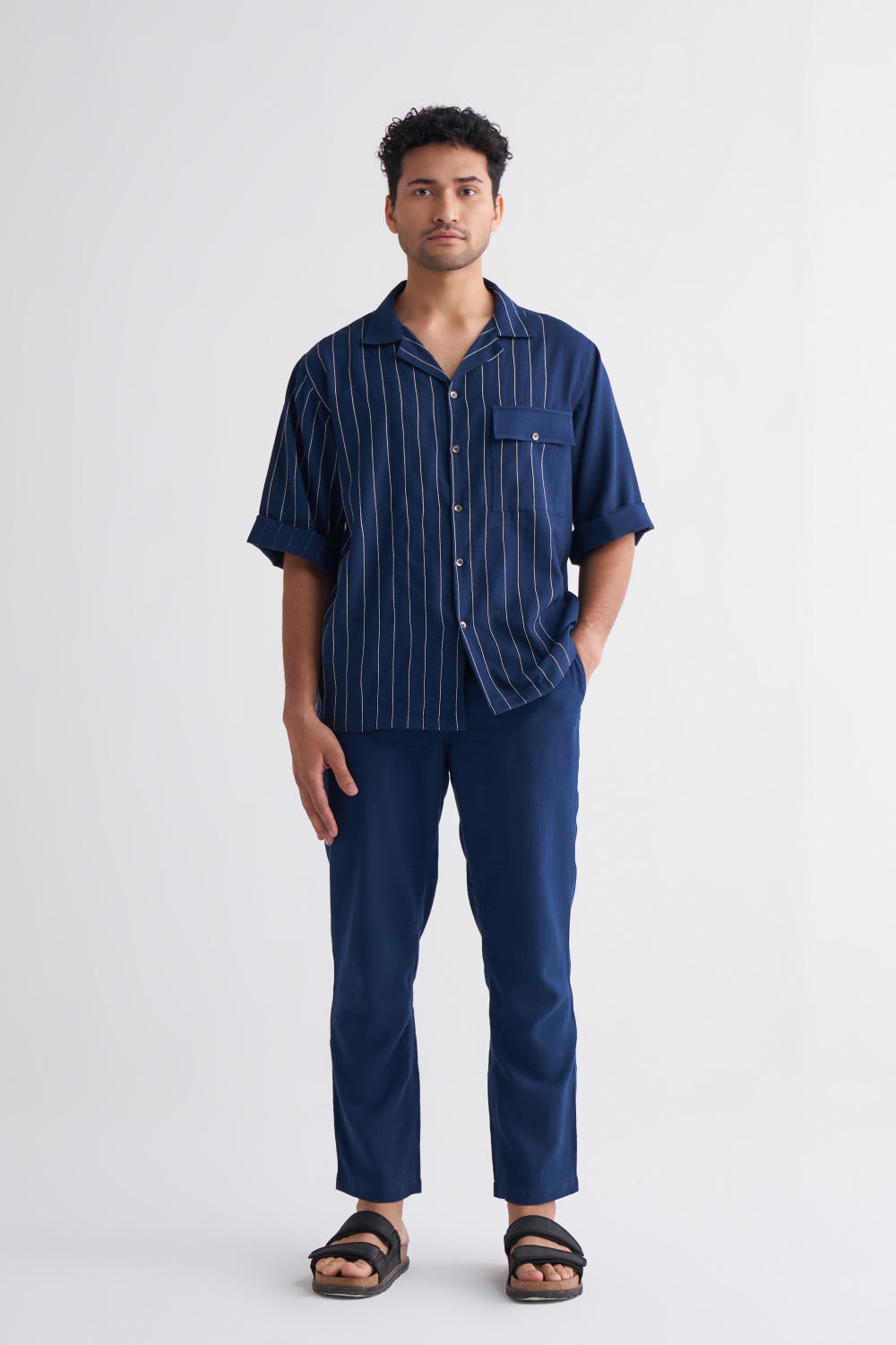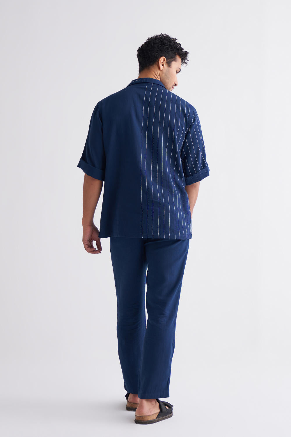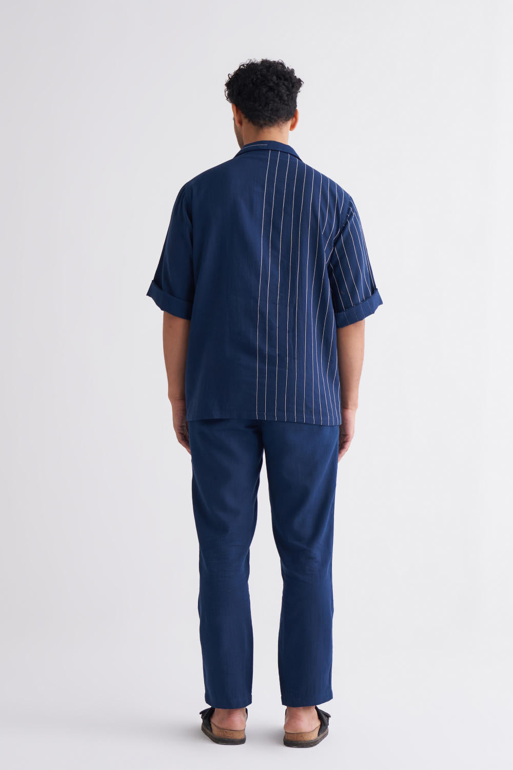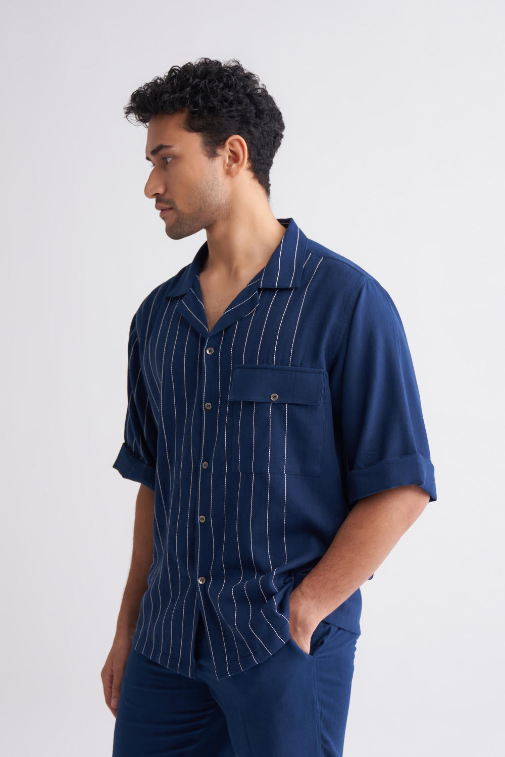 Embroidered Stripe Shirt Co-ord - Navy