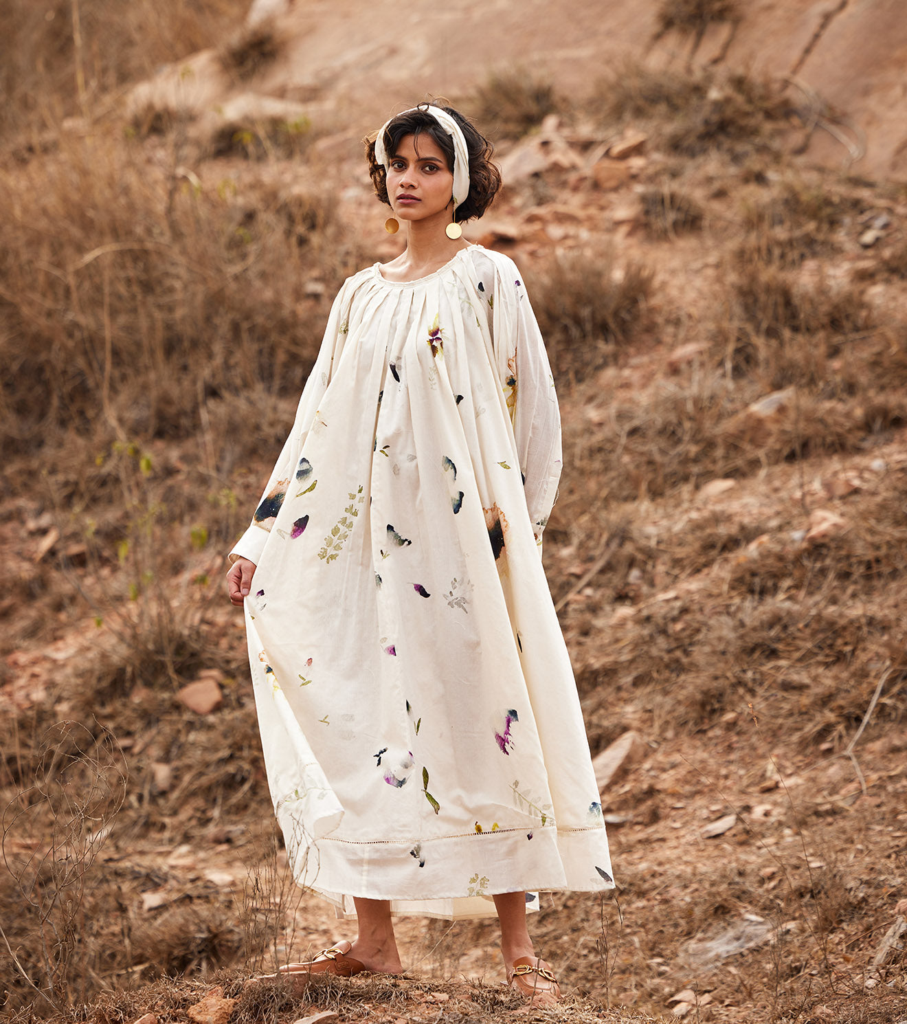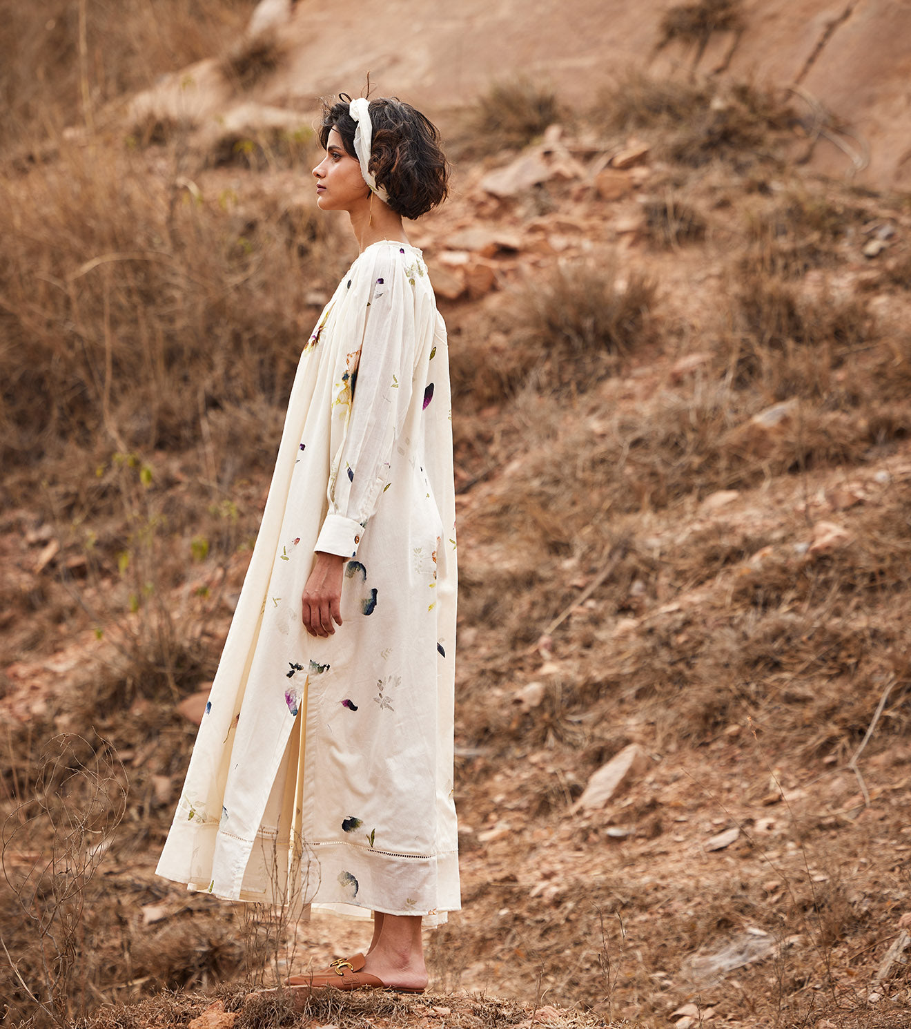 Each piece is grounded in India’s textile heritage yet designed for a woman who moves easily between cultures and climates. The brand’s commitment to homegrown cotton, artisanal processes, and clean, breathable shapes has made these garments not just beautiful, but deeply wearable.