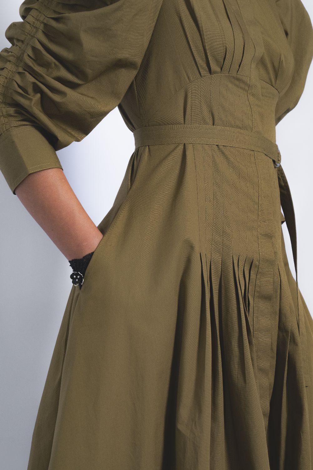 Handcrafted textiles, surplus fabrics, and low-impact materials form the backbone of their collections. Every fabric is chosen with deliberation — traceability, fair labour, and animal welfare are non-negotiables.