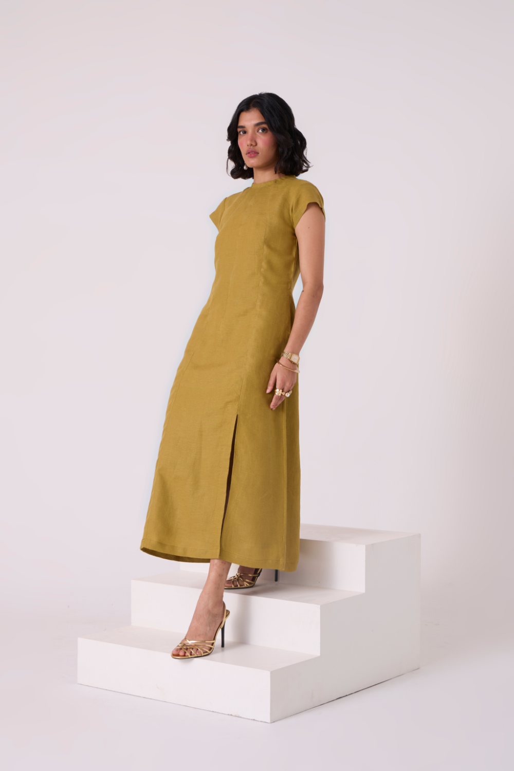 Evgeny Olive Linen Dress