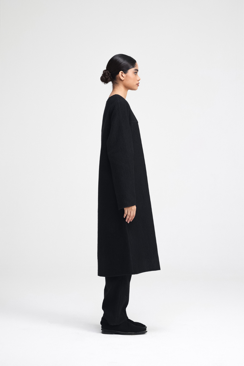 A relaxed fit with an A-line silhouette, the Itsuki Embroidered dress, has a front and back yoke, and is fully lined. The round neck boasts a timeless sophistication.