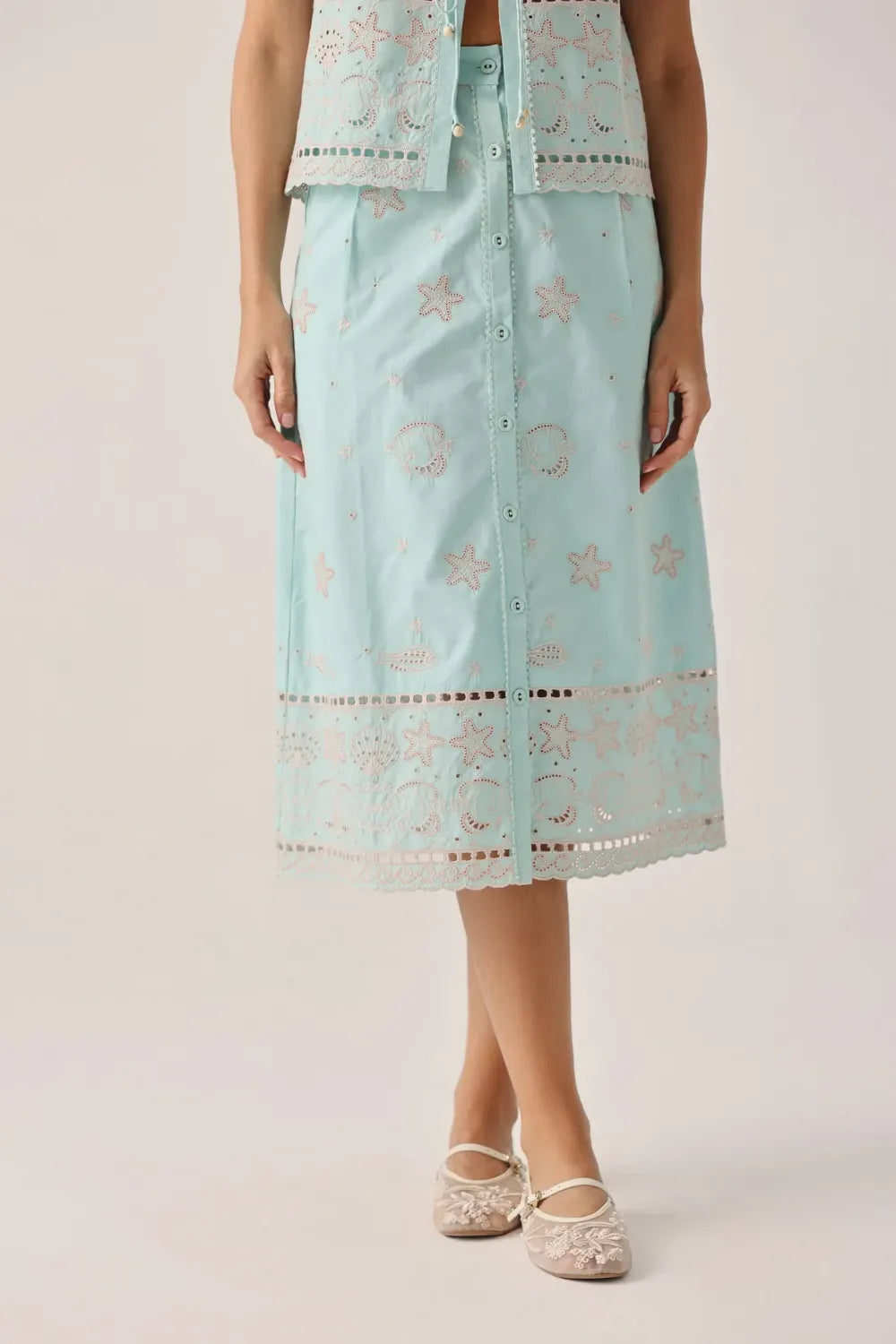 Button-down skirt silhouette Designed for relaxed wear