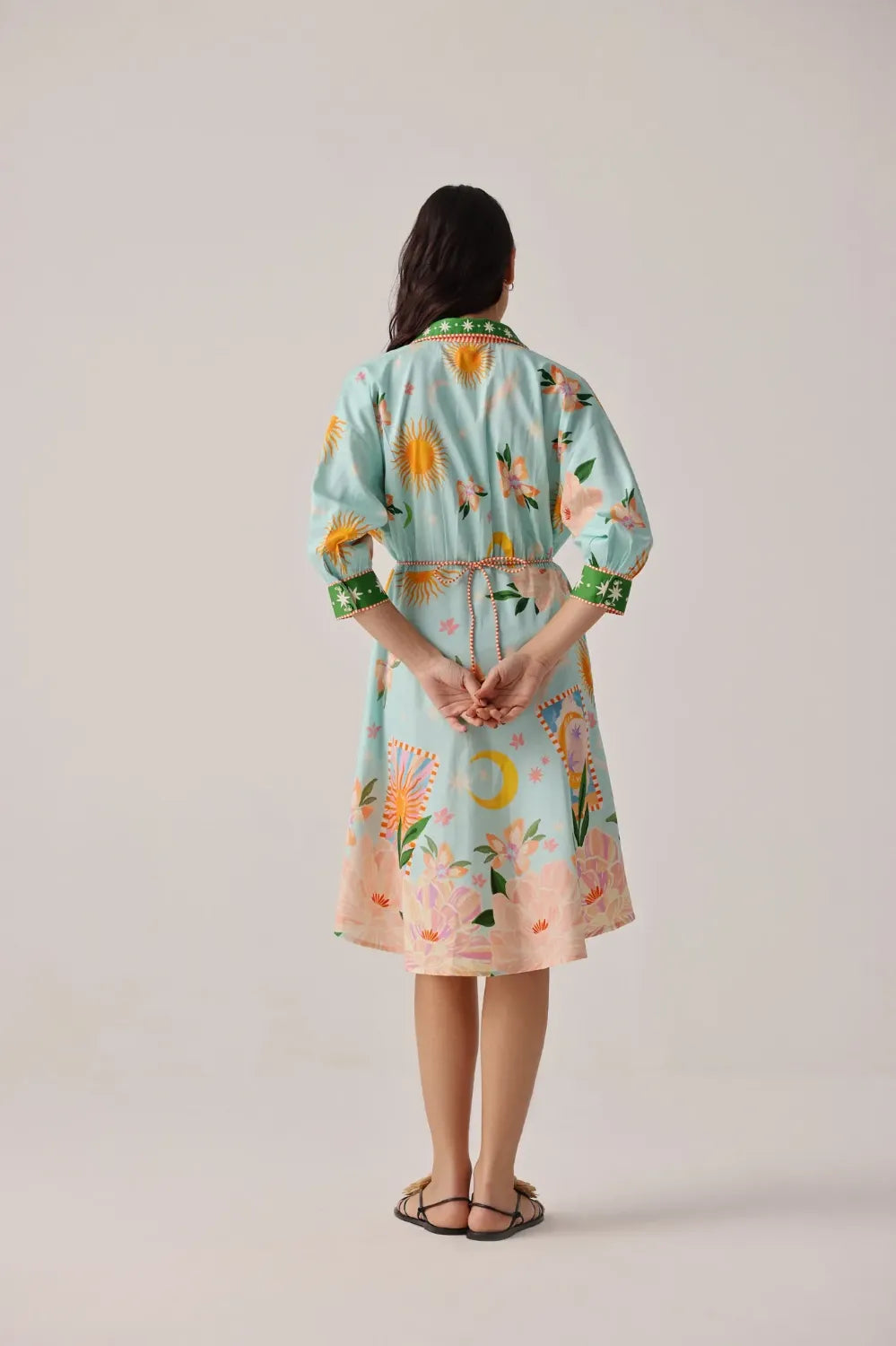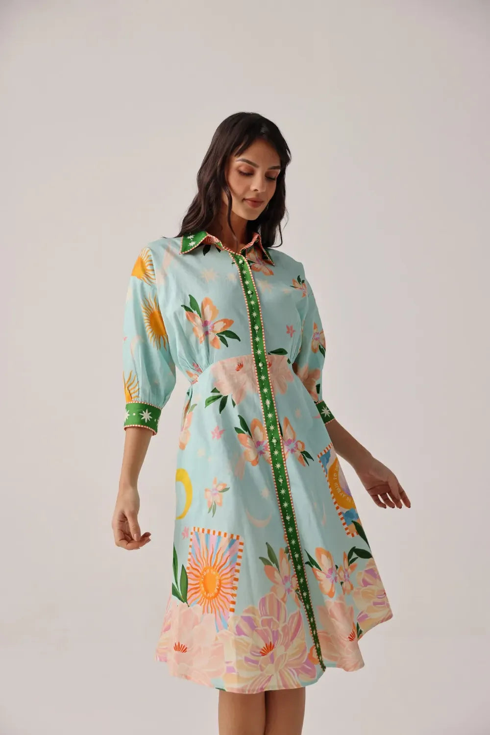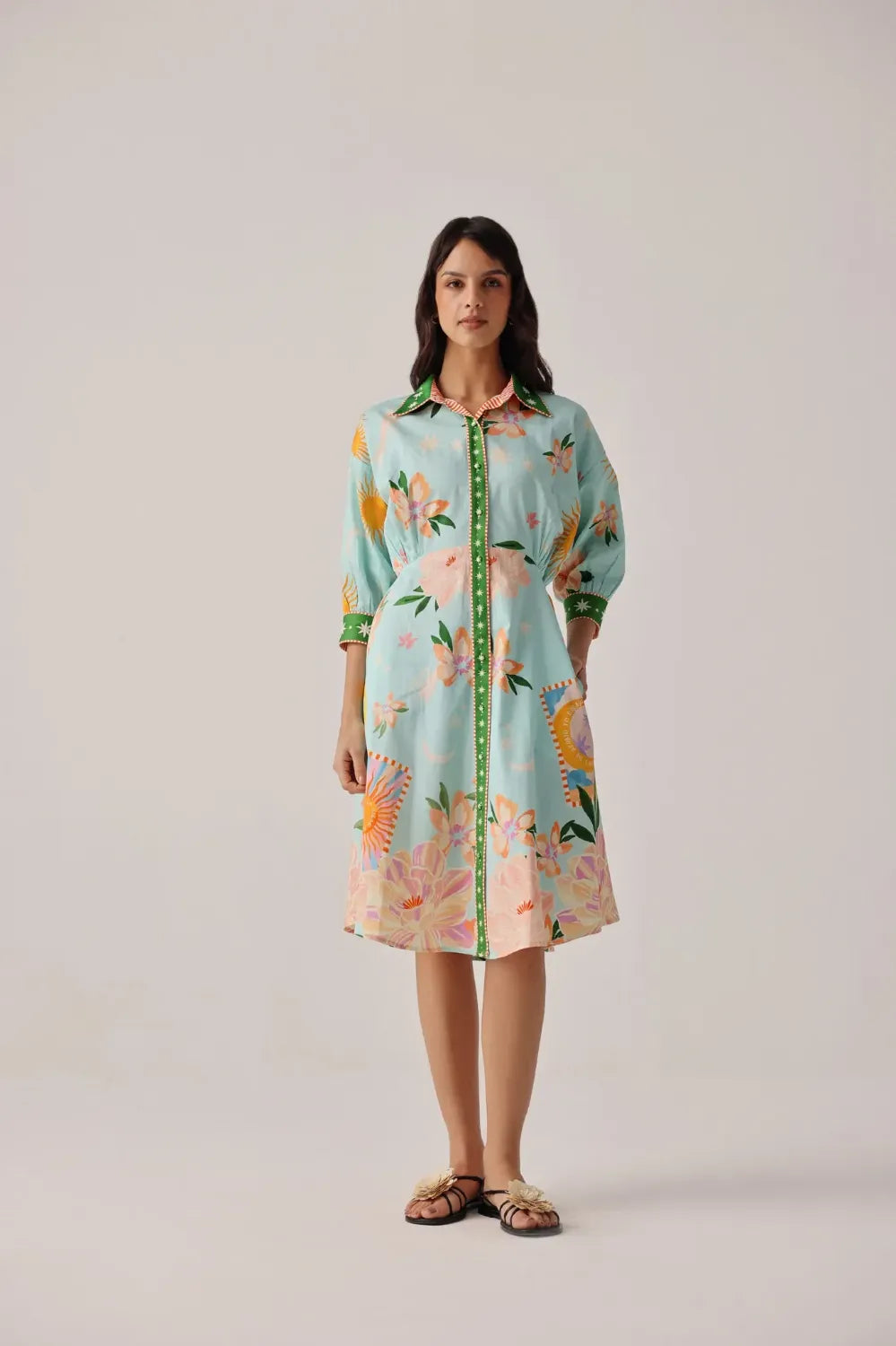 Three-quarter length sleeves with Delicate embroidered detailing at the cuffs