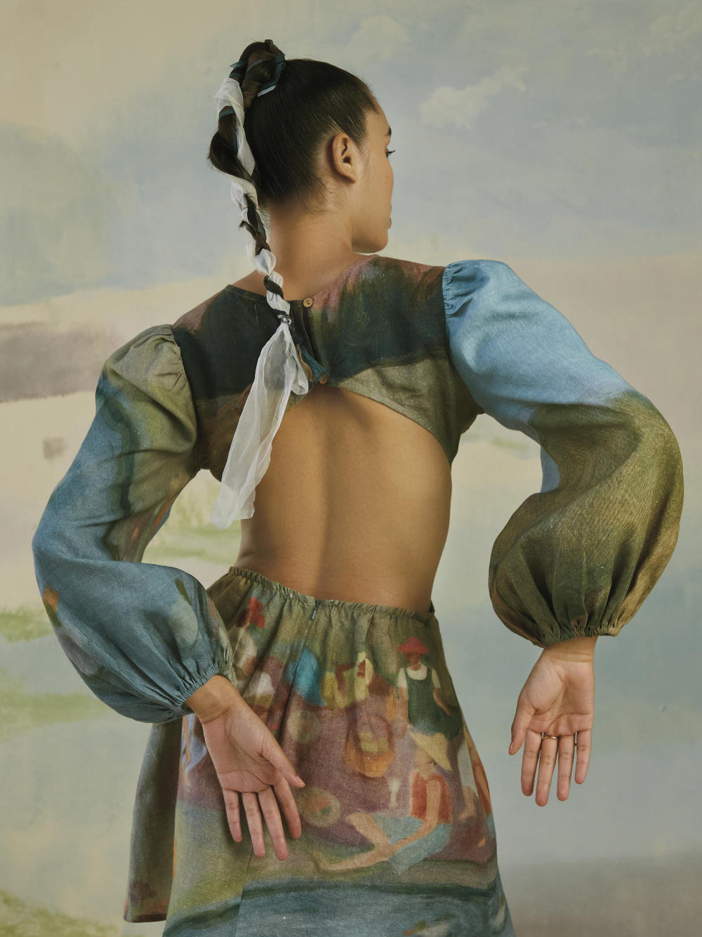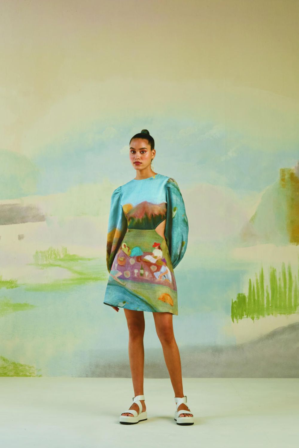CORD blurs the line between art and attire in a way few labels dare to. Here, fabrics become canvases; illustrations—drawn by hand, steeped in imagination—flow across silhouettes that feel sculptural yet deeply wearable. Each piece has a texture of memory to it, as if it carries echoes of a past life, now reframed for a contemporary world.