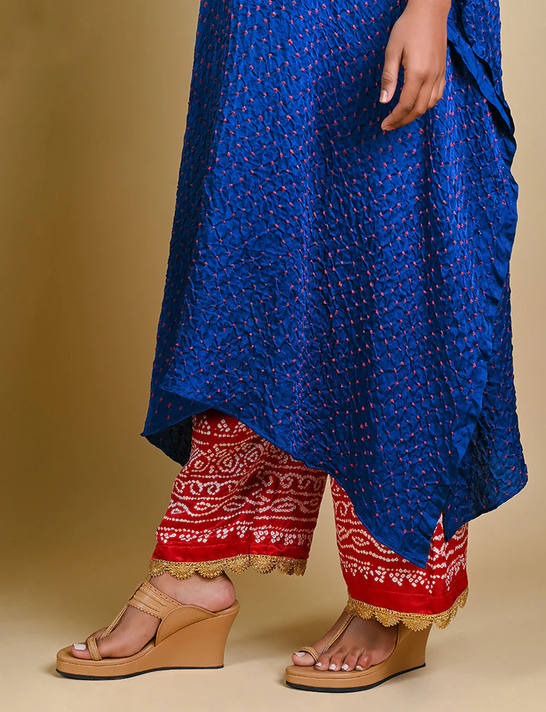 Bandhani palazzo edged with a gold scallop border. Can be worn with any of our kaftans or tunics.