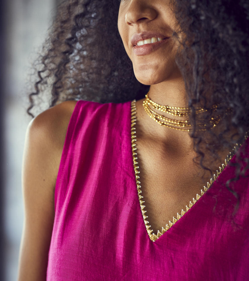 Each piece is grounded in India’s textile heritage yet designed for a woman who moves easily between cultures and climates. The brand’s commitment to homegrown cotton, artisanal processes, and clean, breathable shapes has made these garments not just beautiful, but deeply wearable.