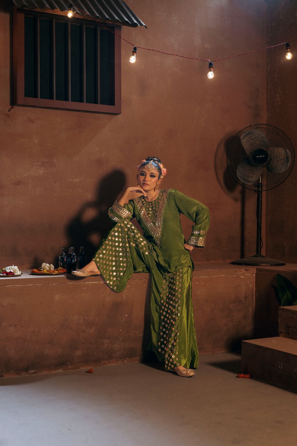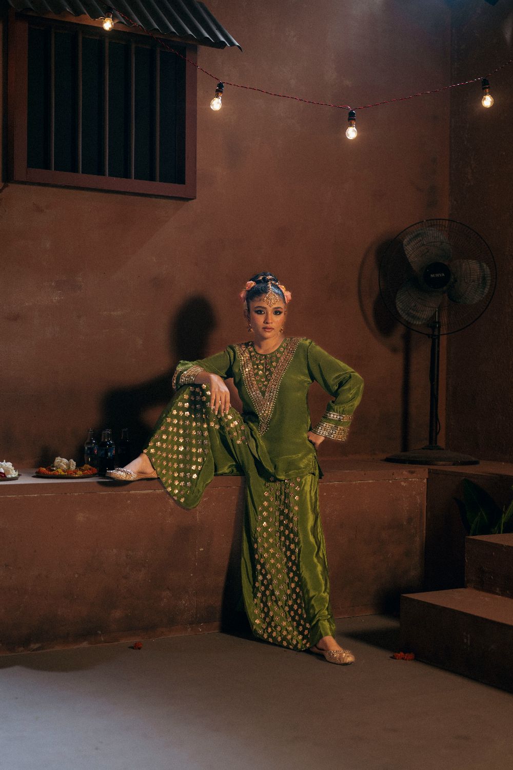 Sunira Short Top Sharara with Dupatta Set- Mehendi
