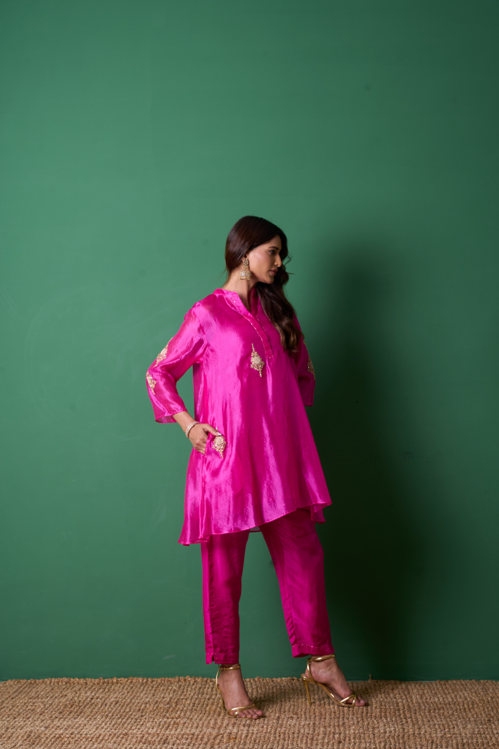 Cord Styled relaxed fit Top and pants with delicate zardozi and bead work on front , back and Sleeves. Embroidered Pants