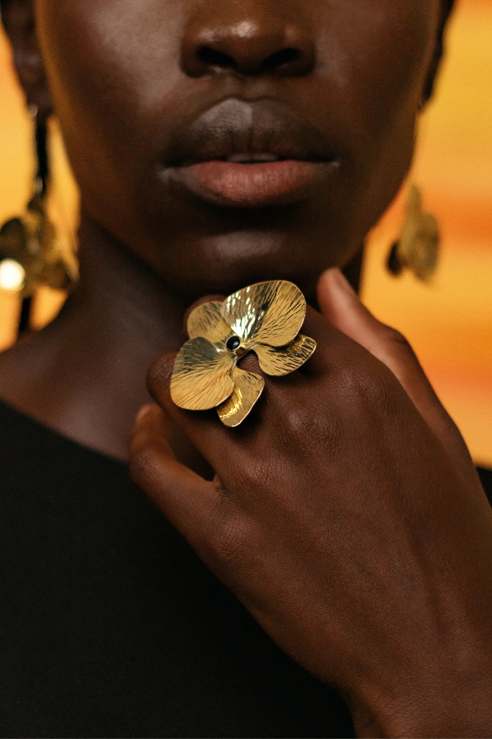 A statement ring that is simply gorgeous. If you're looking for a ring that makes a statement this is one to choose. Made from recycled gold plated brass and intricately etched and shaped to form beautiful orchid flower petals.