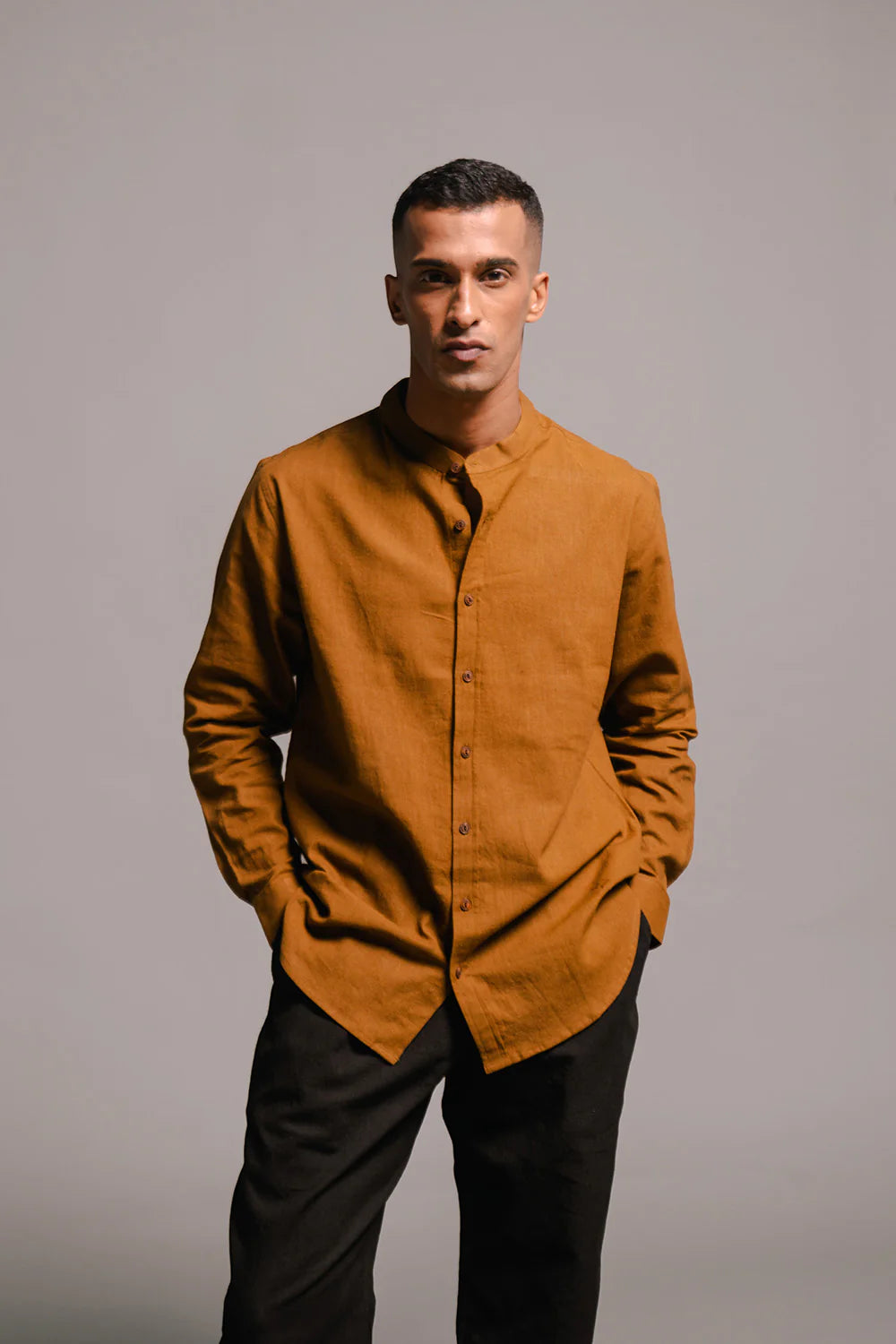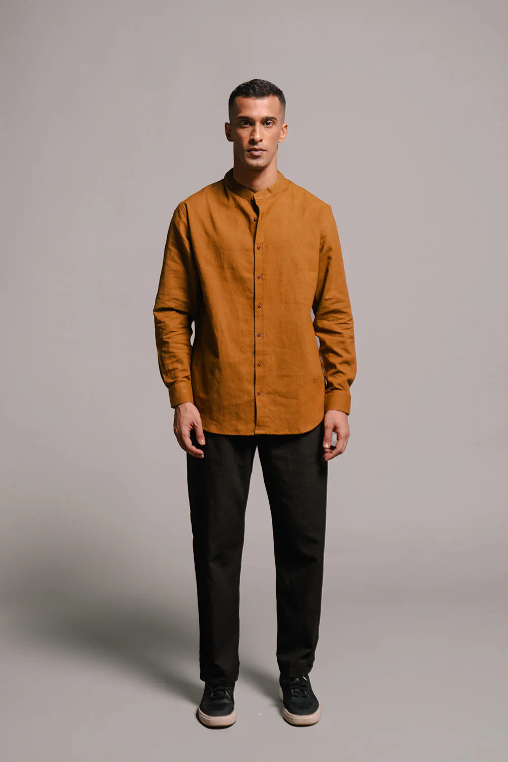 Crafted in our signature co-linen, the Chinese collar shirts are ideal companions for an evening out, special occasions and intimate celebrations. Choose our soft breathable linen shirts in earthy hues to compliment your style and become a part of your classic wardrobe essentials.