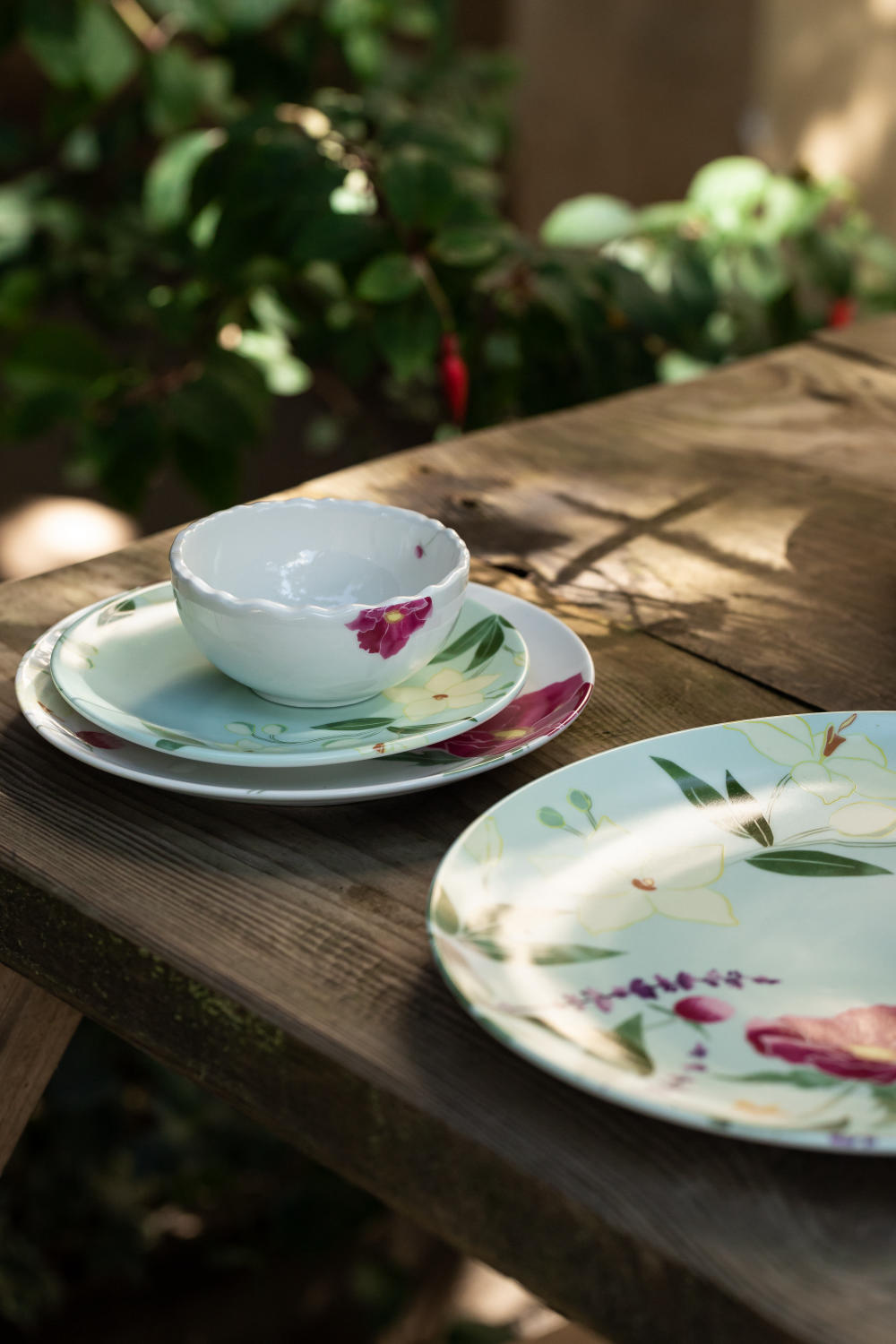Gently decorated with Anemone and Pink Clover, these katoris are ideal for home cooked Indian lunch or for dips with cocktails and starters. Gift Boxed with a Postcard detailing the five flowers used to design the collection.