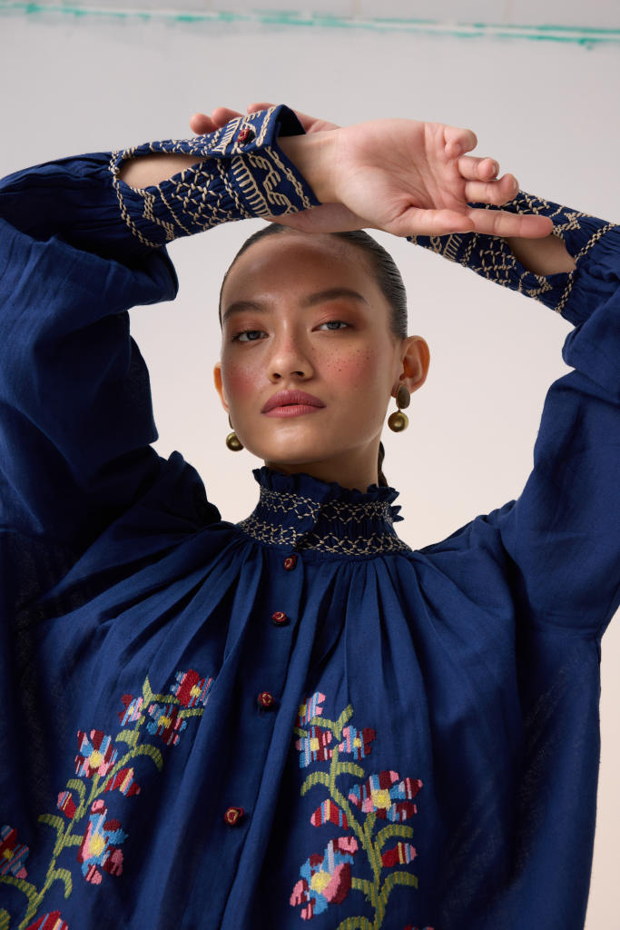 What anchors the brand is its reverence for technique. Smocking, lacework, appliqué—the kind of hand-labour that belongs to heirloom trunks and craft histories—reappear with a fresh, expressive clarity. The garments feel almost cinematic: nostalgic without being dated, whimsical without being naive, artistic without ever losing function. It’s the rare kind of design that feels both intimate and extraordinary.