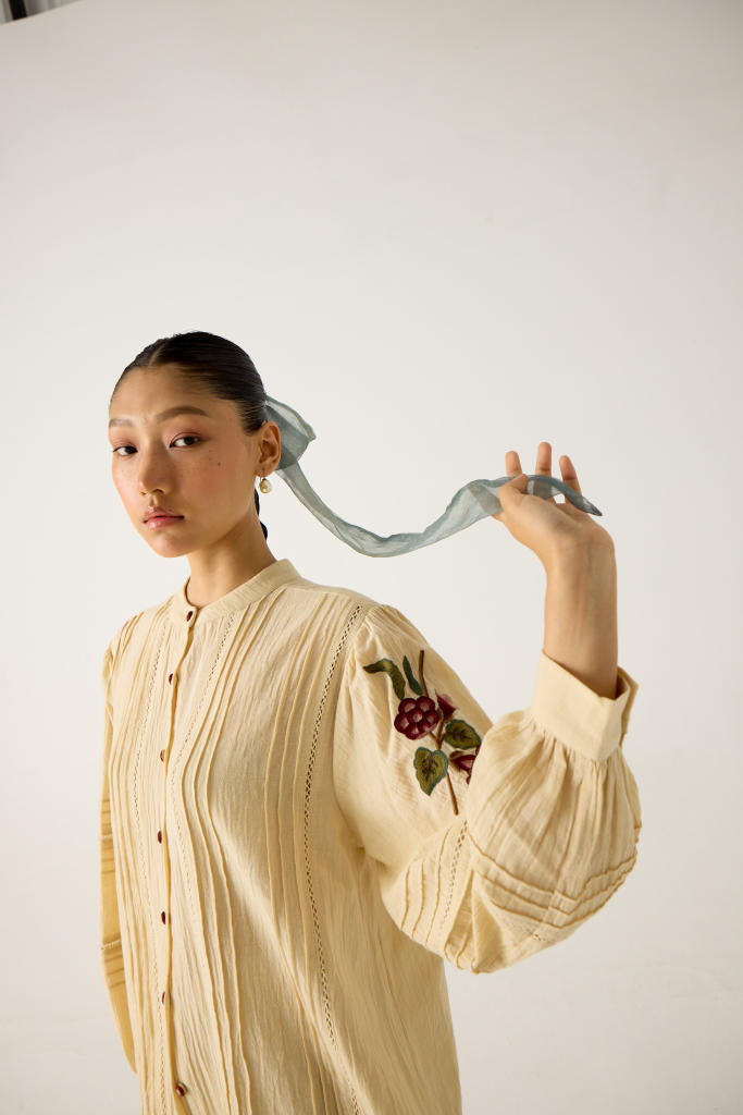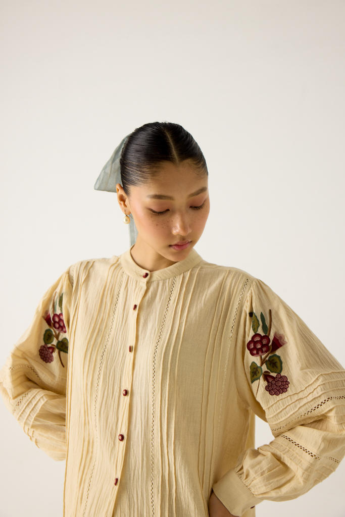 What anchors the brand is its reverence for technique. Smocking, lacework, appliqué—the kind of hand-labour that belongs to heirloom trunks and craft histories—reappear with a fresh, expressive clarity. The garments feel almost cinematic: nostalgic without being dated, whimsical without being naive, artistic without ever losing function. It’s the rare kind of design that feels both intimate and extraordinary.