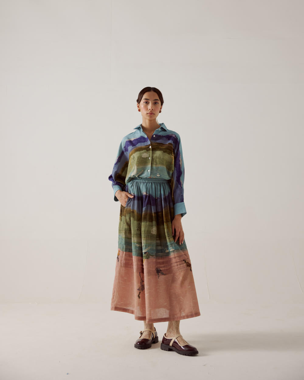 CORD blurs the line between art and attire in a way few labels dare to. Here, fabrics become canvases; illustrations—drawn by hand, steeped in imagination—flow across silhouettes that feel sculptural yet deeply wearable. Each piece has a texture of memory to it, as if it carries echoes of a past life, now reframed for a contemporary world.
