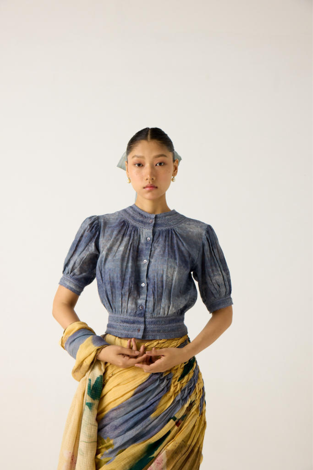 Details: Cropped Length, Smocking details on the cuff & neck, and hem Front button fastening