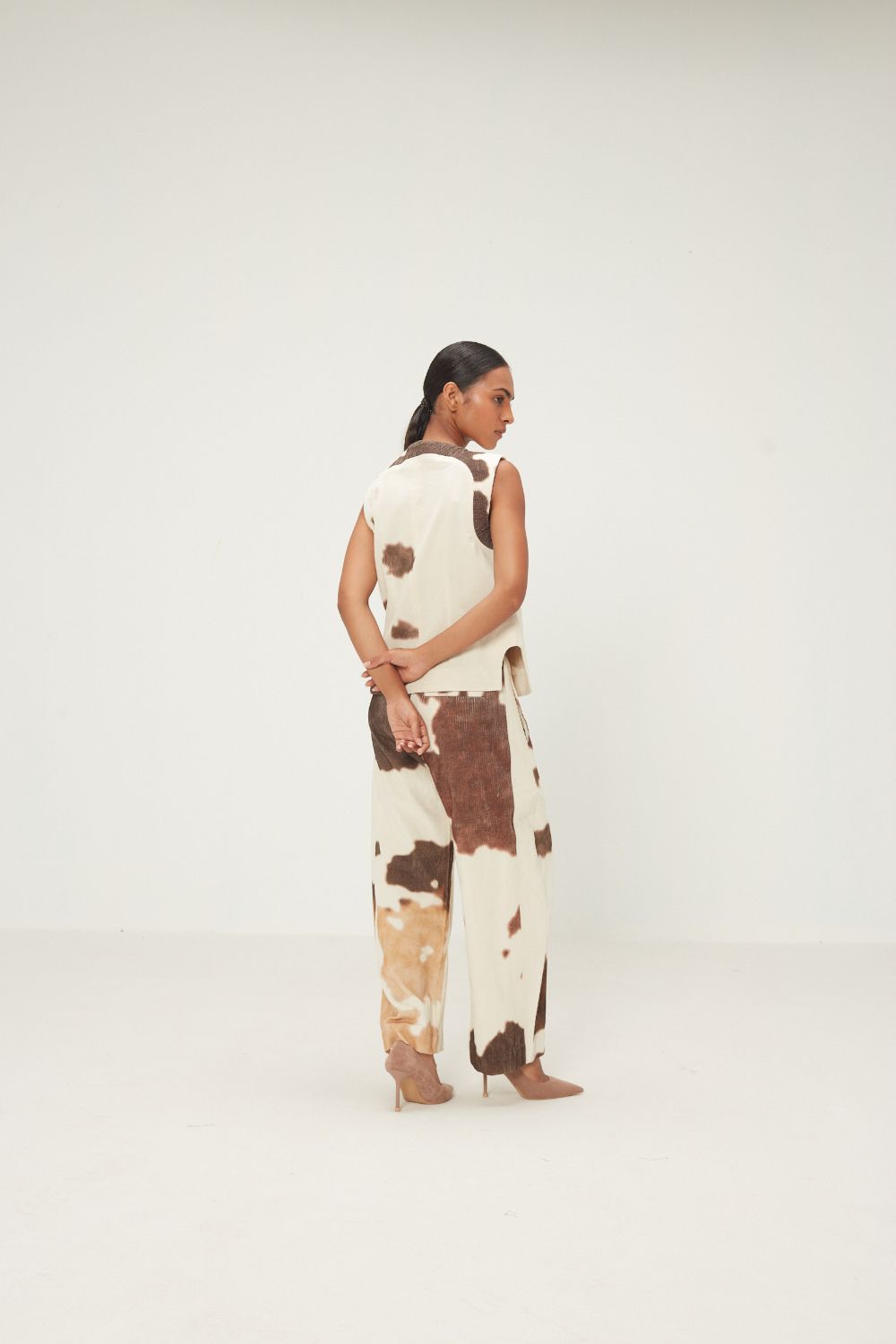 The Holstein Top is tailored in soft corduroy, detailed with natural brown and beige patches drift across a creamy canvas. Designed with a flattering neckline, button-down front, and welt pockets, it brings modern polish to any look - perfect for layering over shirts or wearing solo for a sharp yet feminine finish.