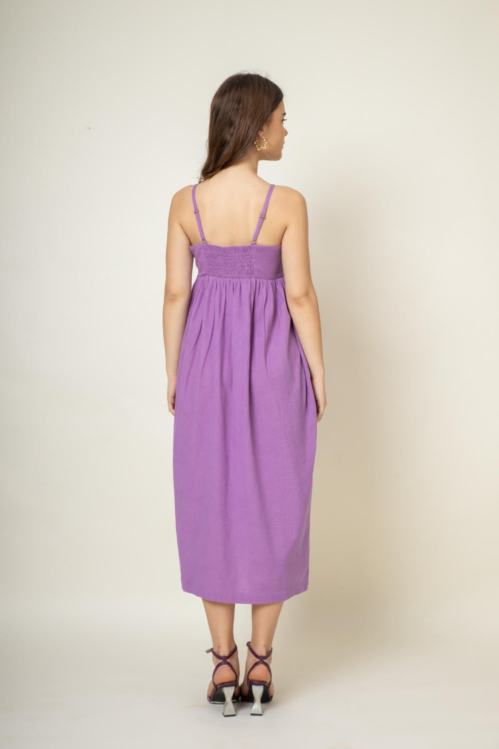 Description: Strappy dress with smocking detail at back and adjustable straps. A comfortable fun dress for all-day wear.