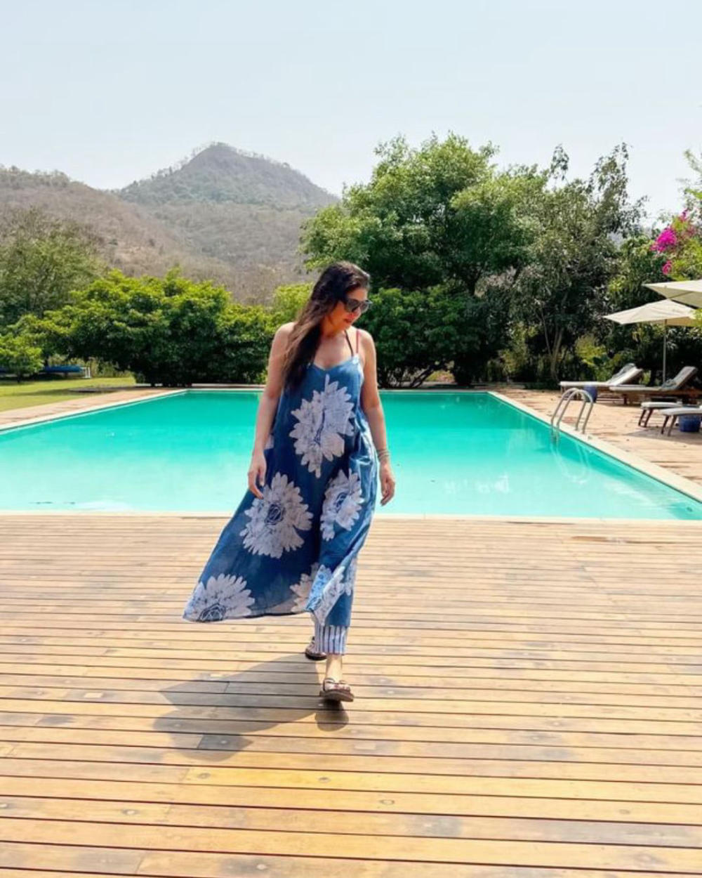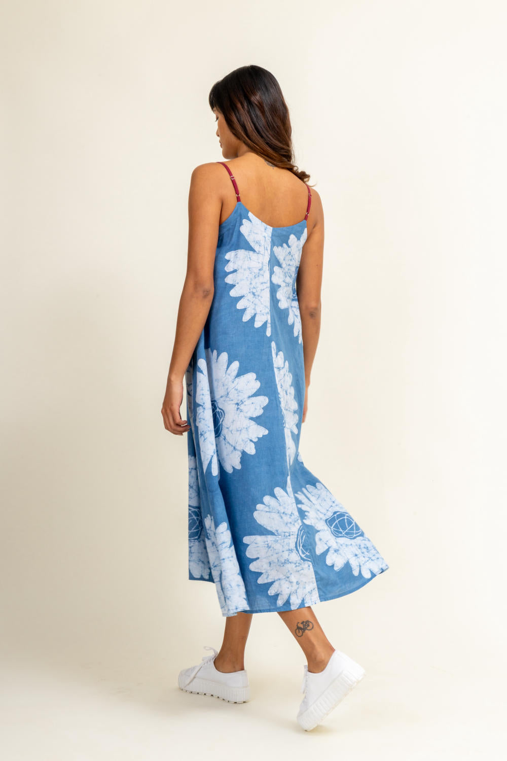 Description: Batik Floral dress with adjustable straps and side pockets
