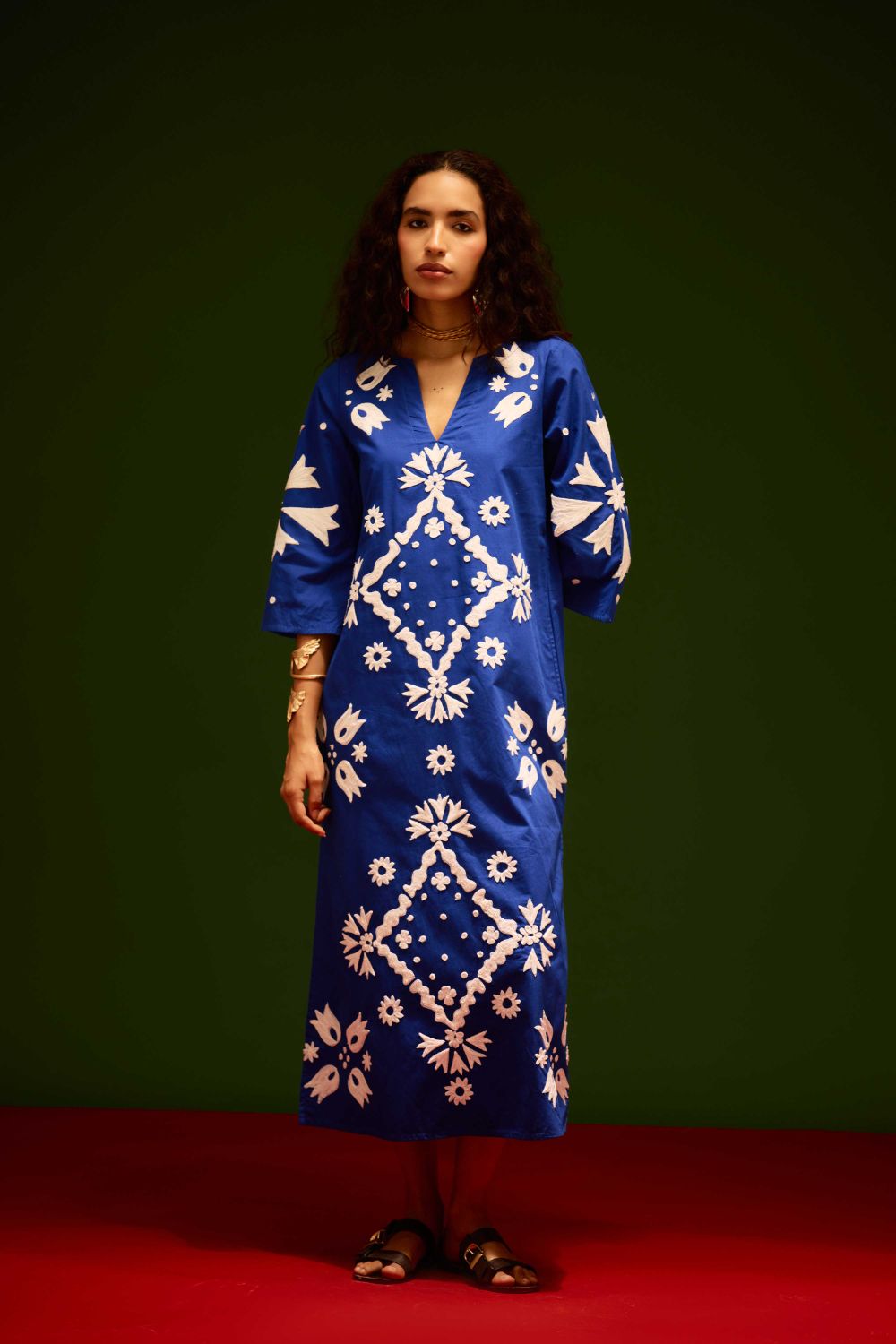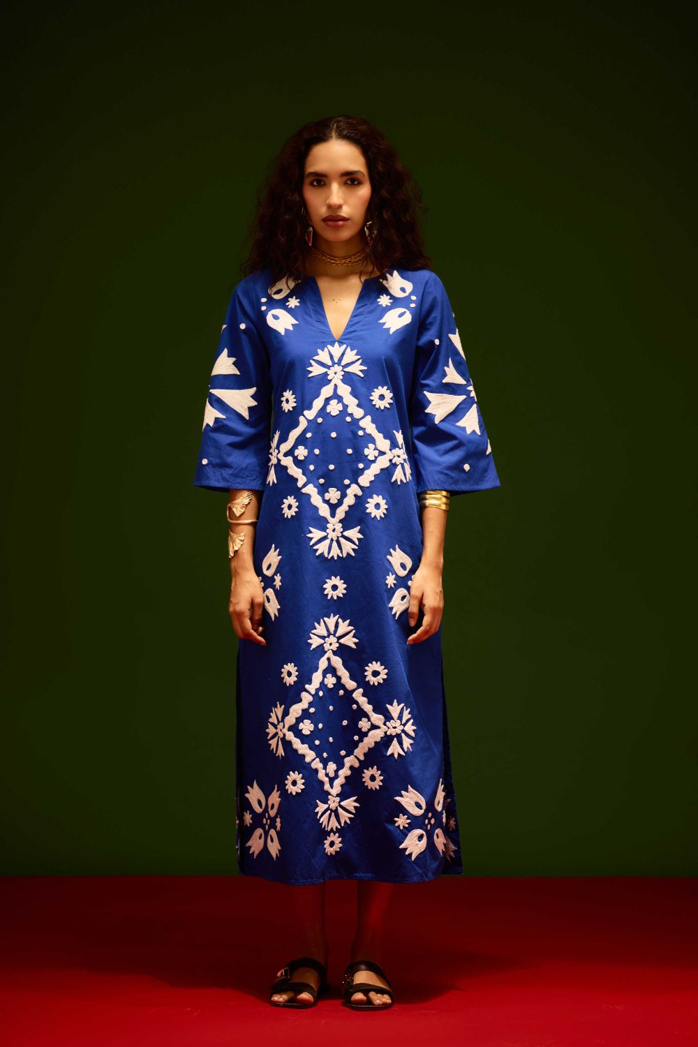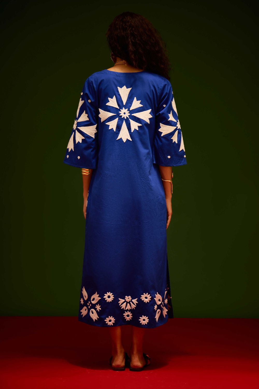 Blue with Ivory Sitara Thread Embroidery Cotton Maxi Dress
