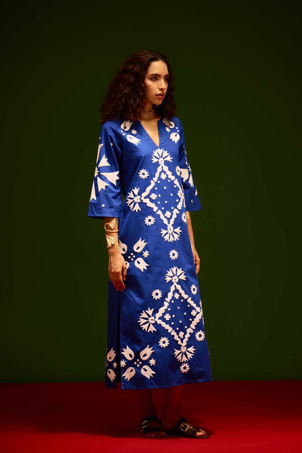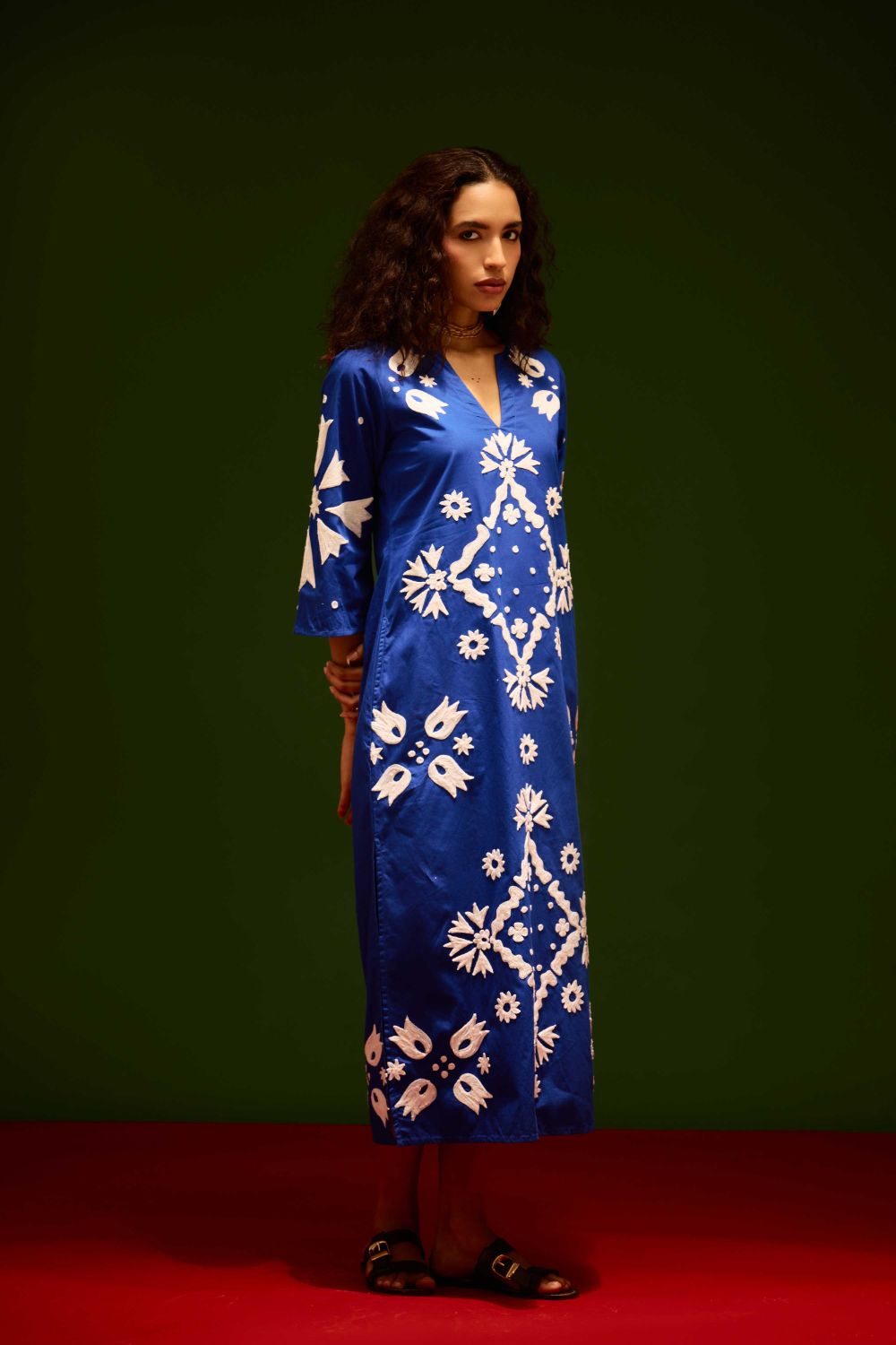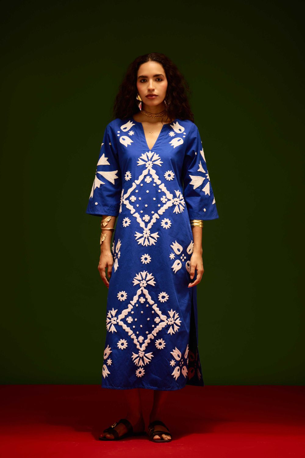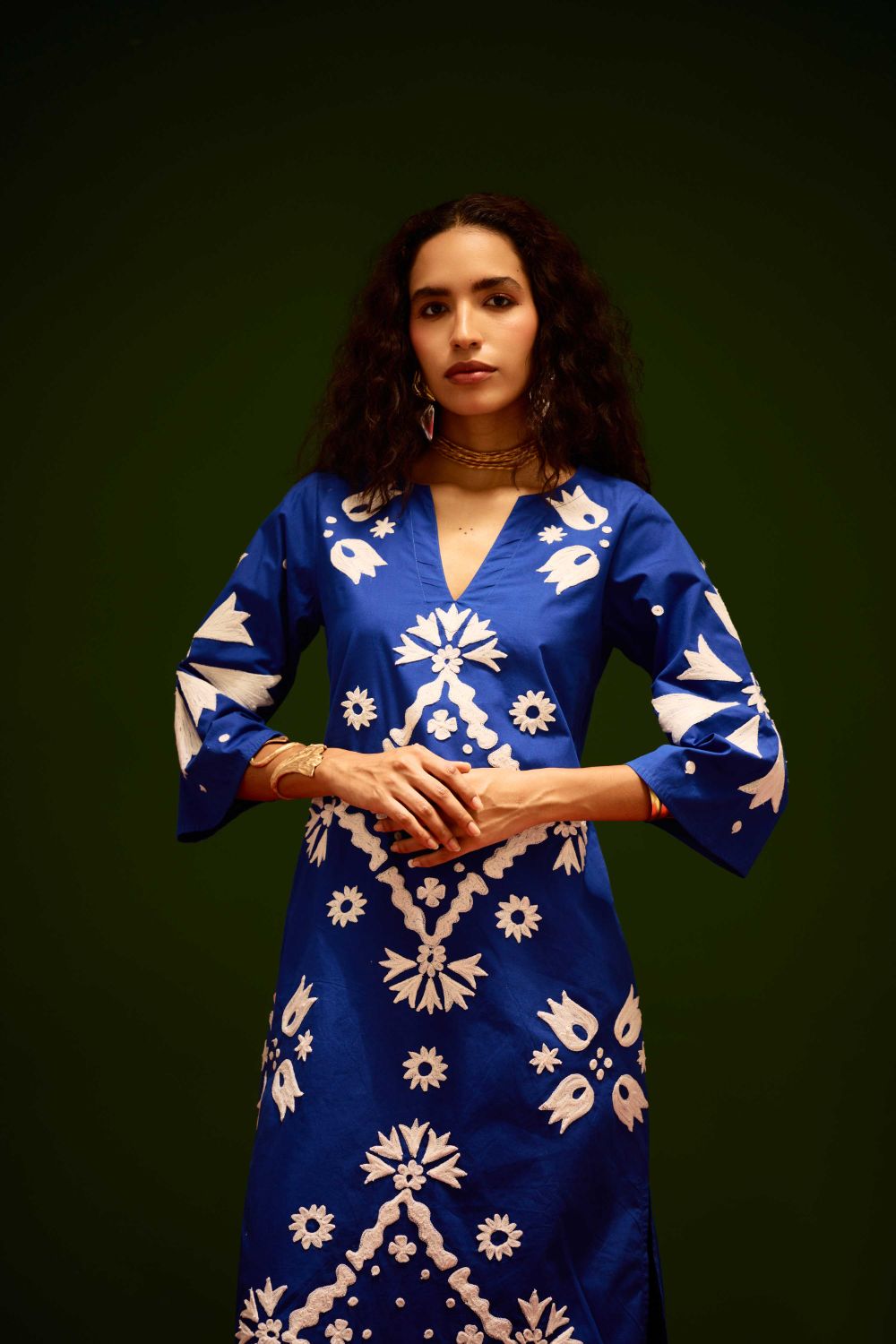 Blue with Ivory Sitara Thread Embroidery Cotton Maxi Dress
