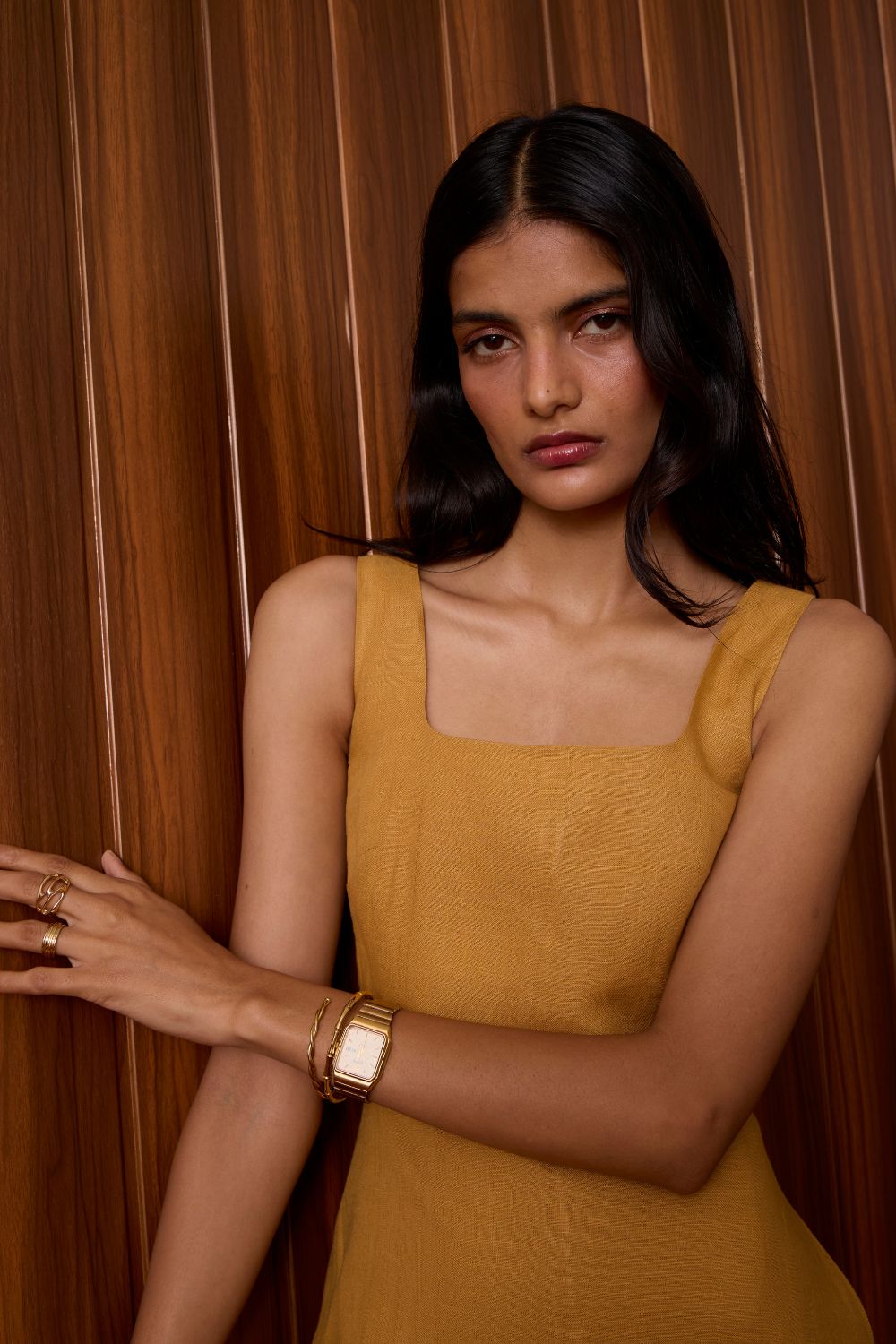Glasswing Mustard Linen Dress