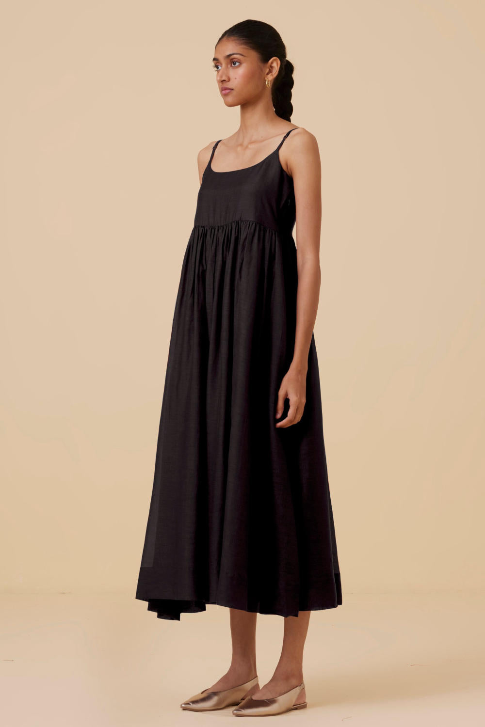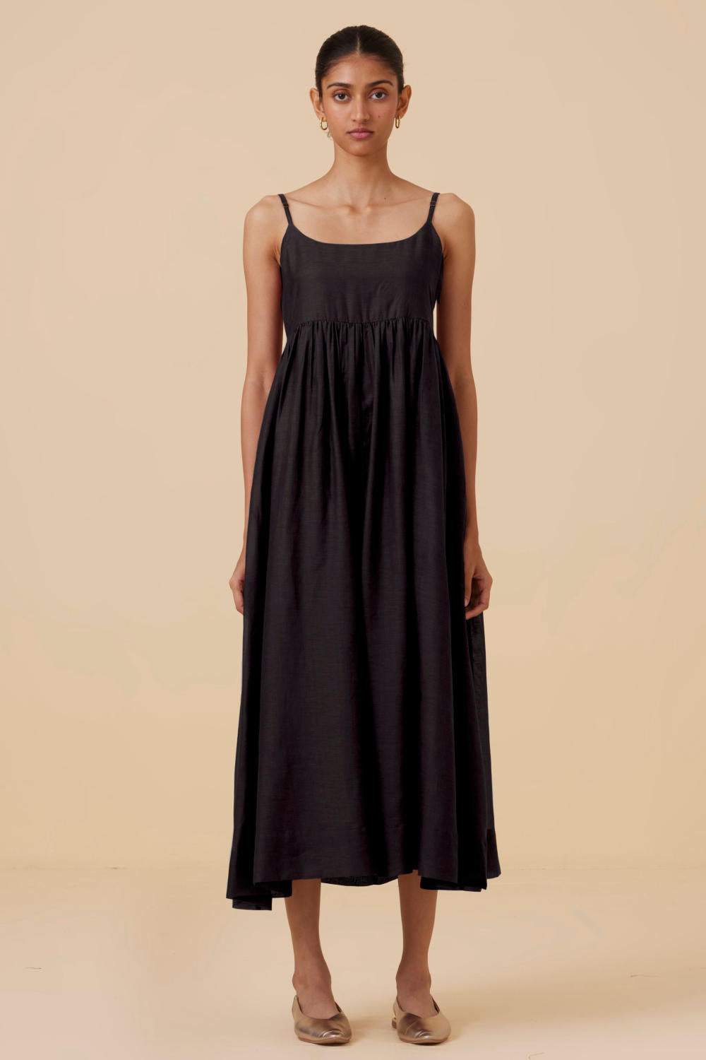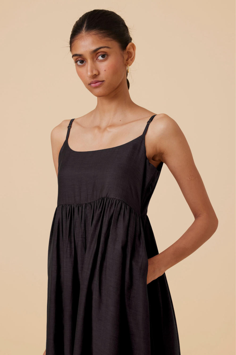Sleeveless midi dress crafted from lush cotton silk. In-seam pockets. Side zip fastening for easy slip on. This dress is fully lined.