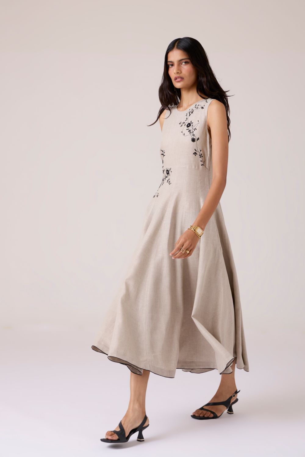 - Hand-embroidered yoke and waist placement
