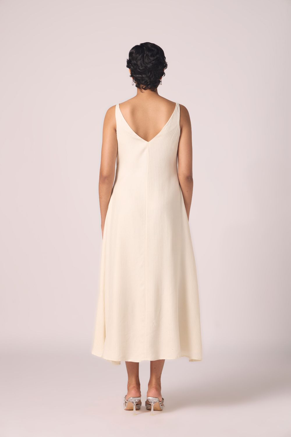Cut for clarity, this slip dress reveals as much in movement as in line. A square neckline and deep back V create a profile of modern simplicity, balanced by silk’s fluidity.