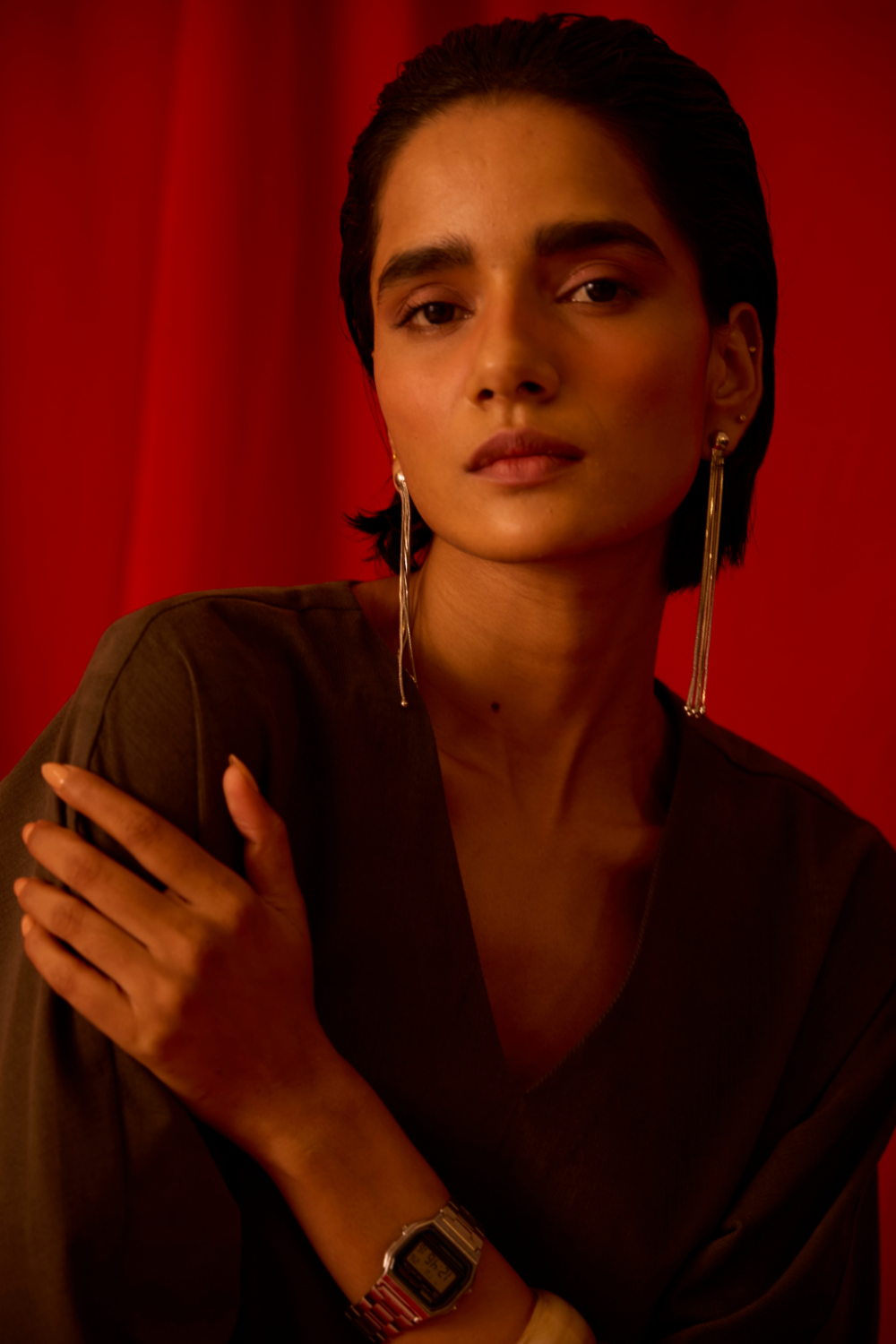 Shalini is 5'8 and wearing XS. Her body measurements are Bust: 30.5", Waist: 25", Hips: 35.5