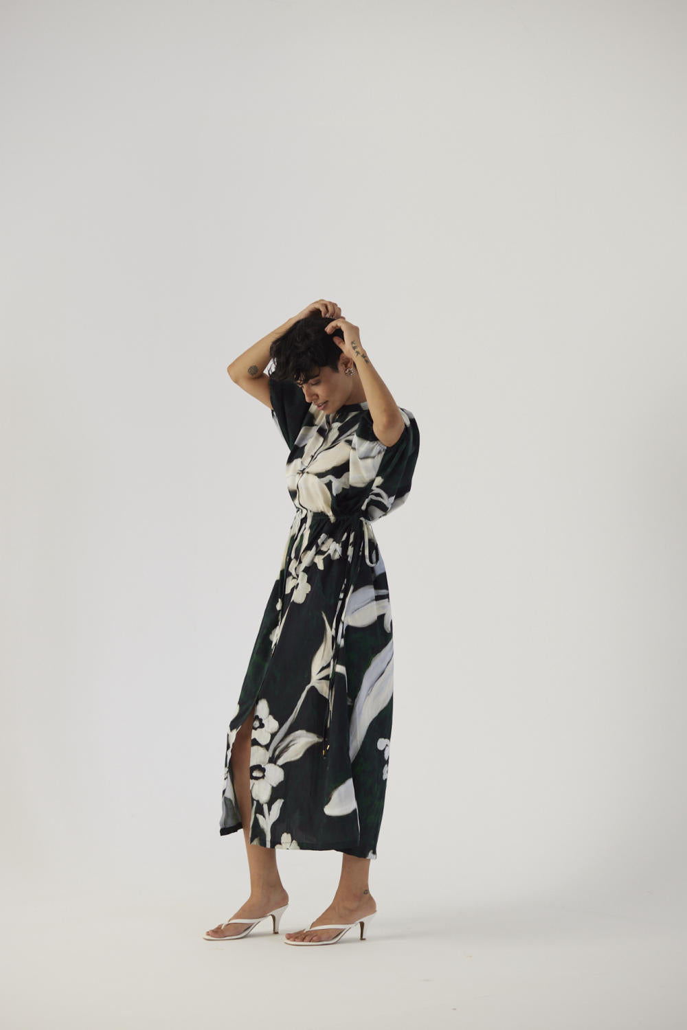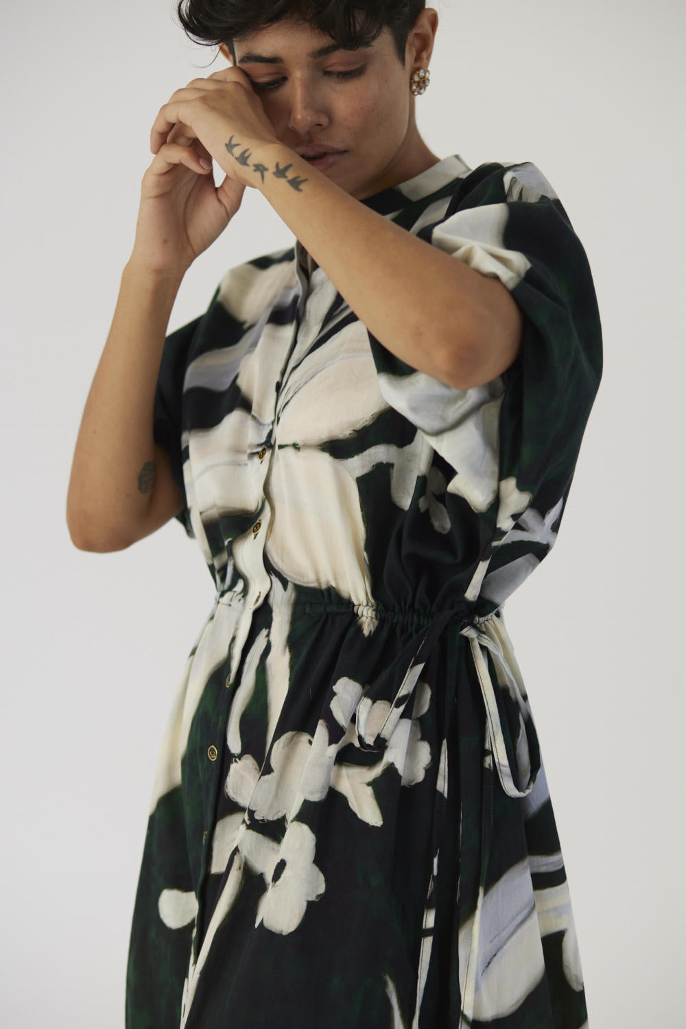 This dress is crafted in the Chicory print carefully printed on Cotton Satin.