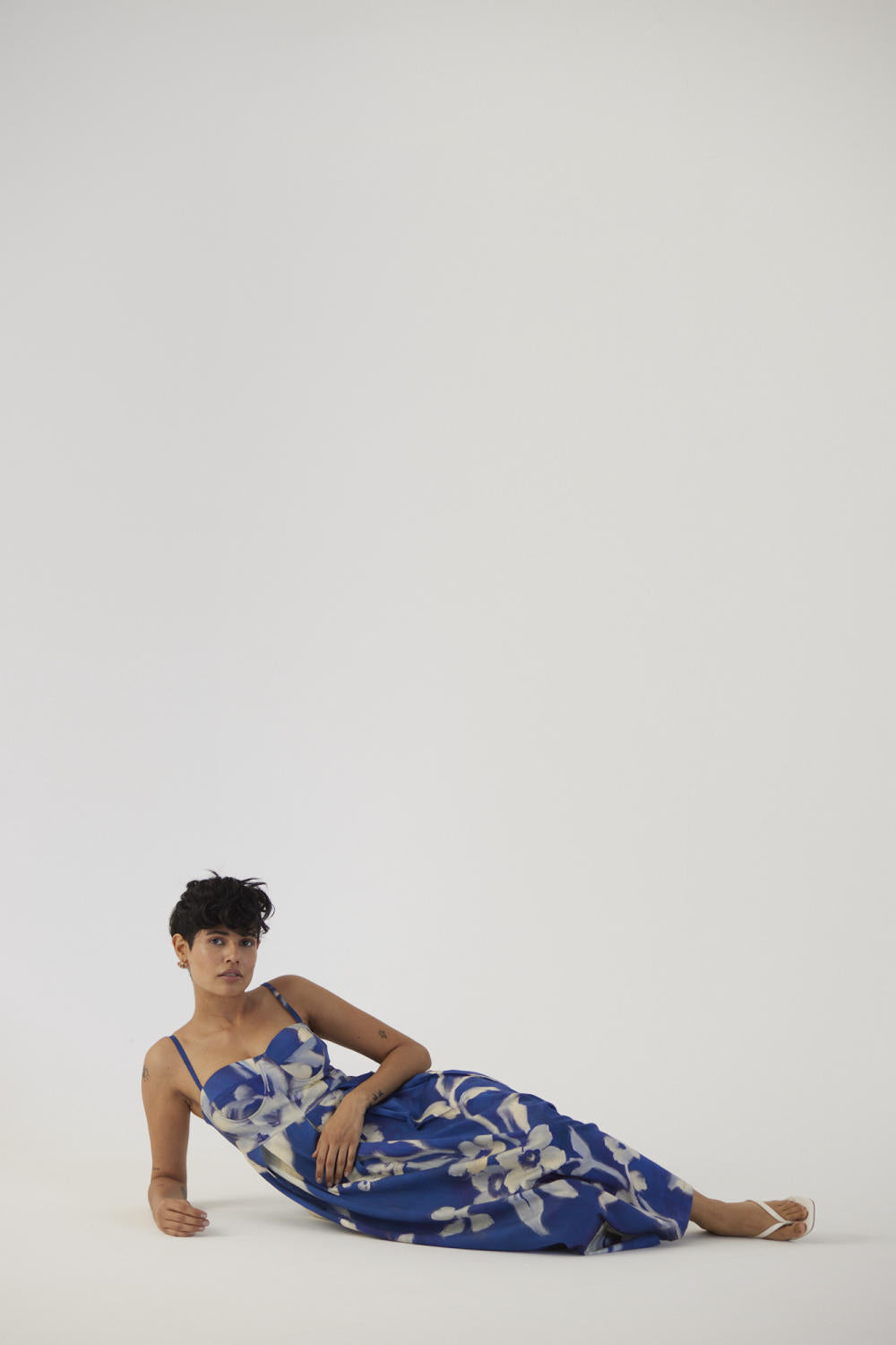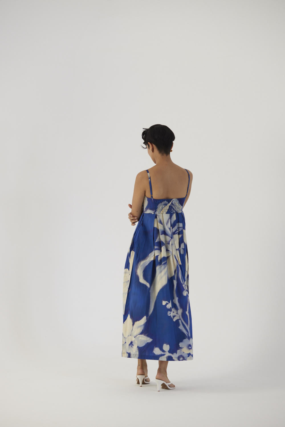 This dress is crafted in the Chicory print carefully printed on Cotton Satin.