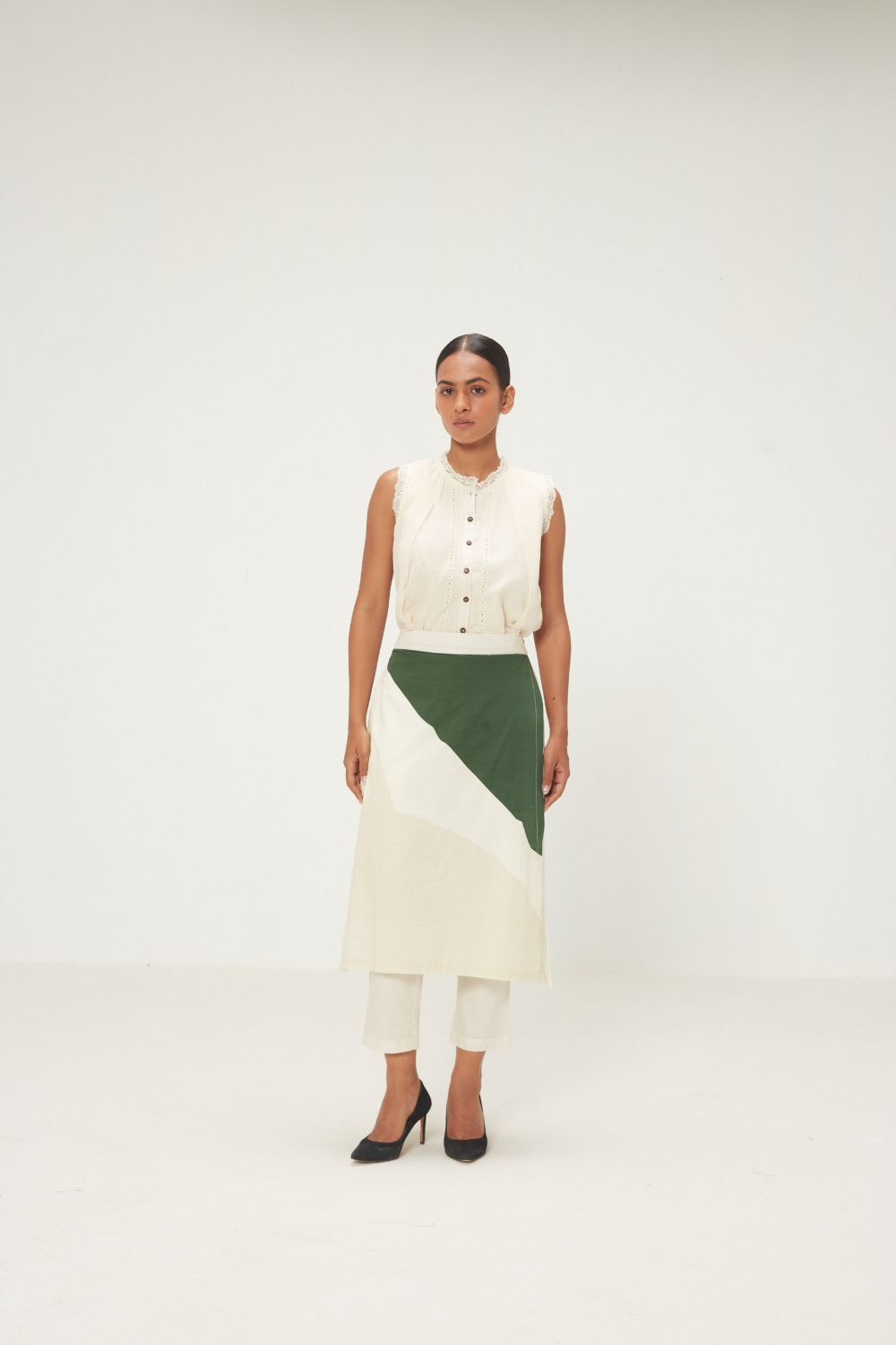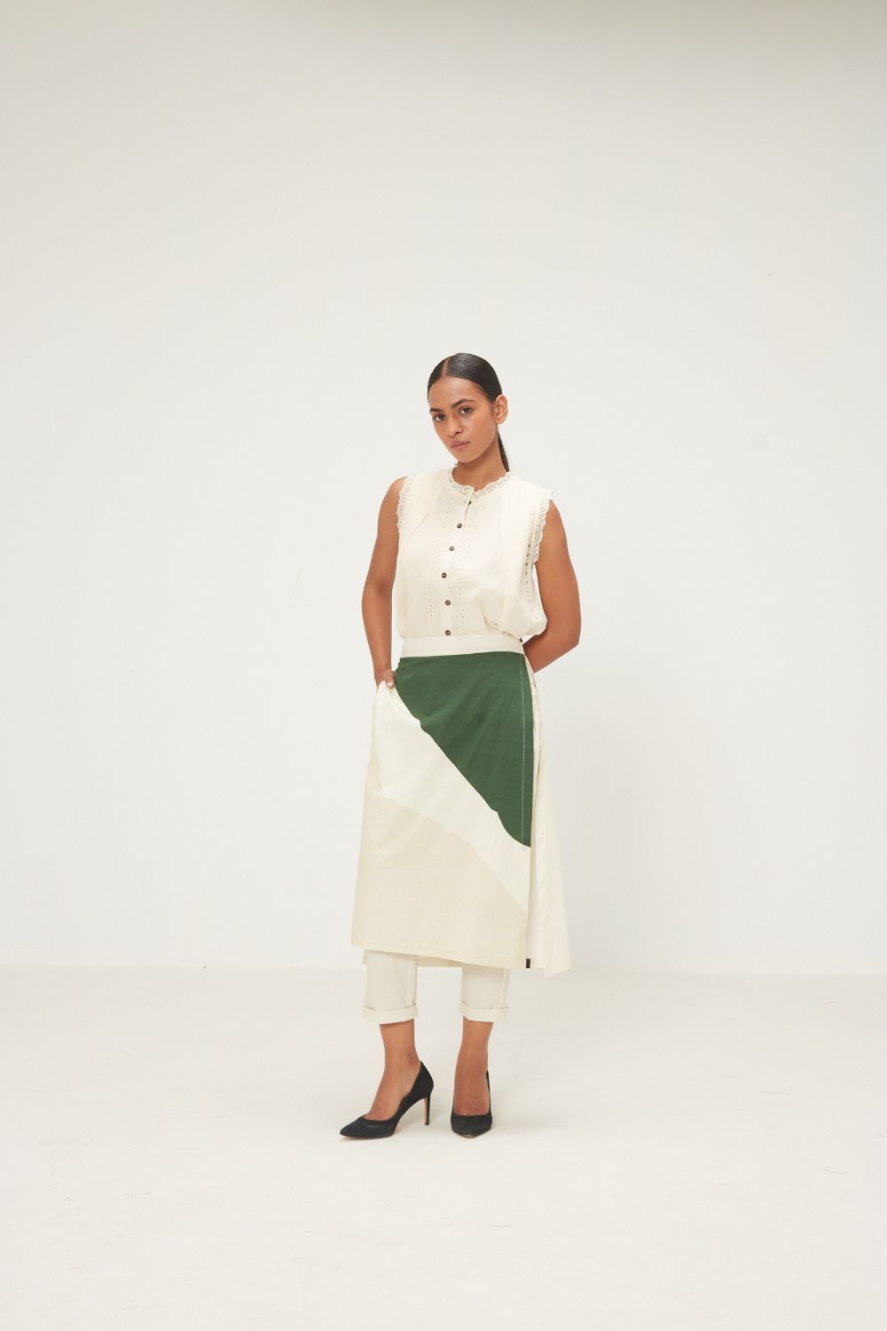 Each piece is grounded in India’s textile heritage yet designed for a woman who moves easily between cultures and climates. The brand’s commitment to homegrown cotton, artisanal processes, and clean, breathable shapes has made these garments not just beautiful, but deeply wearable.