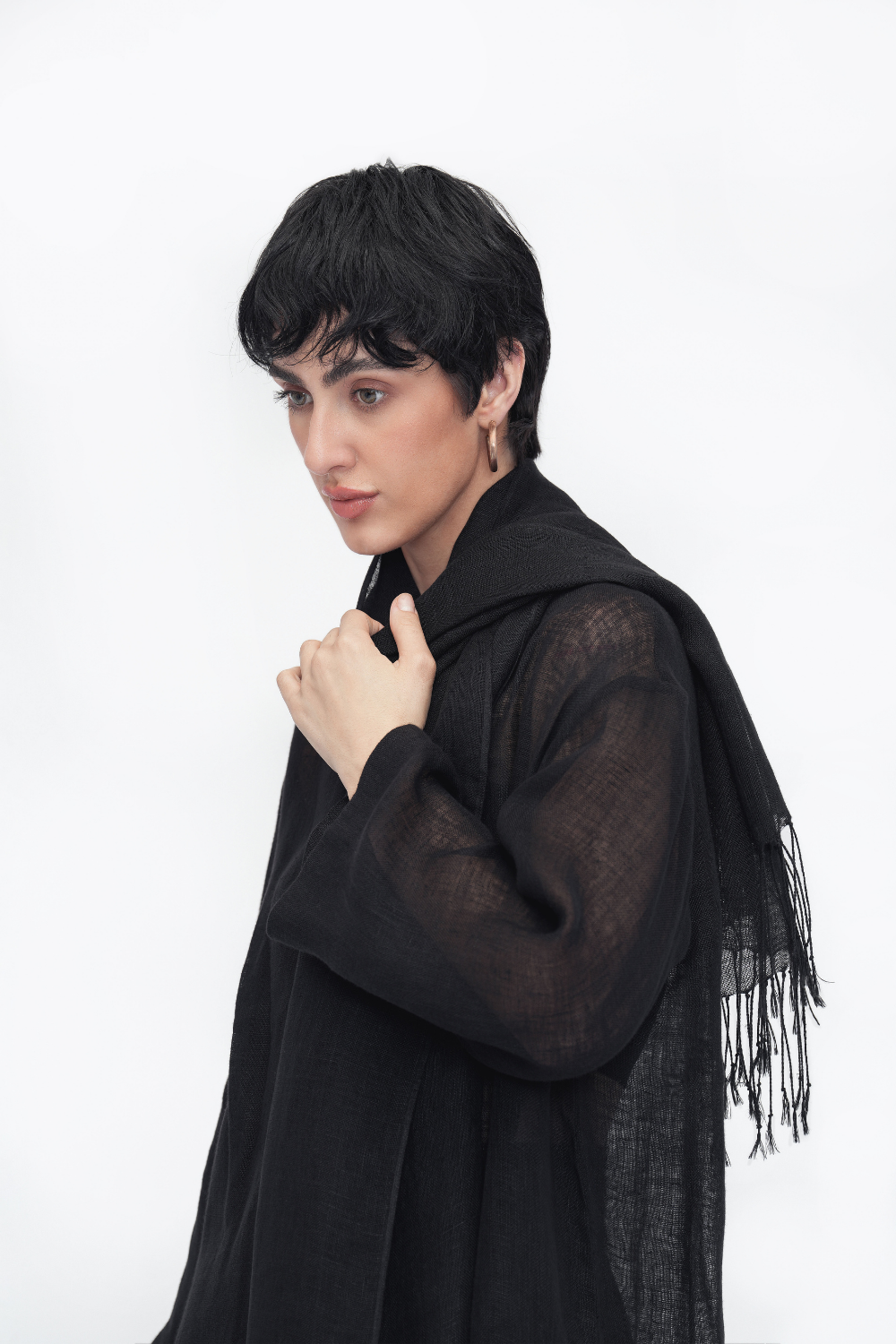 A breathable summer scarf in soft linen gauze. Designed with raw fringe edges and generous dimensions, it’s a versatile, lightweight layer for warm days and breezy evenings.