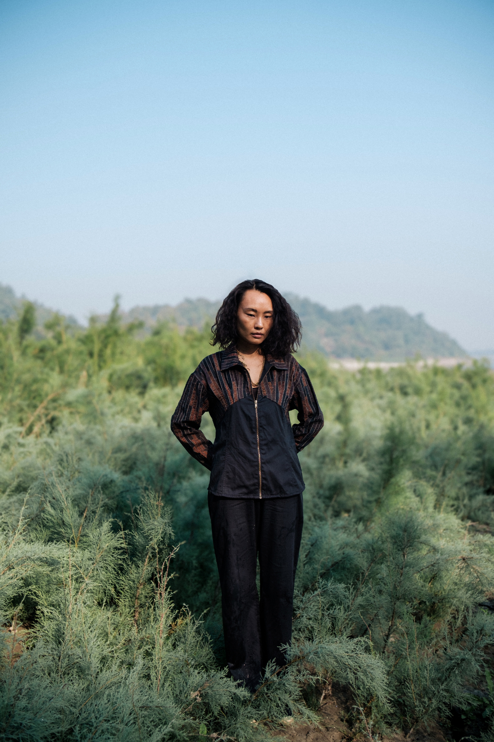 Charmee’s work doesn’t chase seasonal novelty. Instead, she builds garments through the lens of regenerative thinking: plant-based fibres, non-toxic dyes, biodegradable materials, conscious pattern-making, and silhouettes designed to circulate, not accumulate. Every piece begins with the question, “How lightly can we live?”