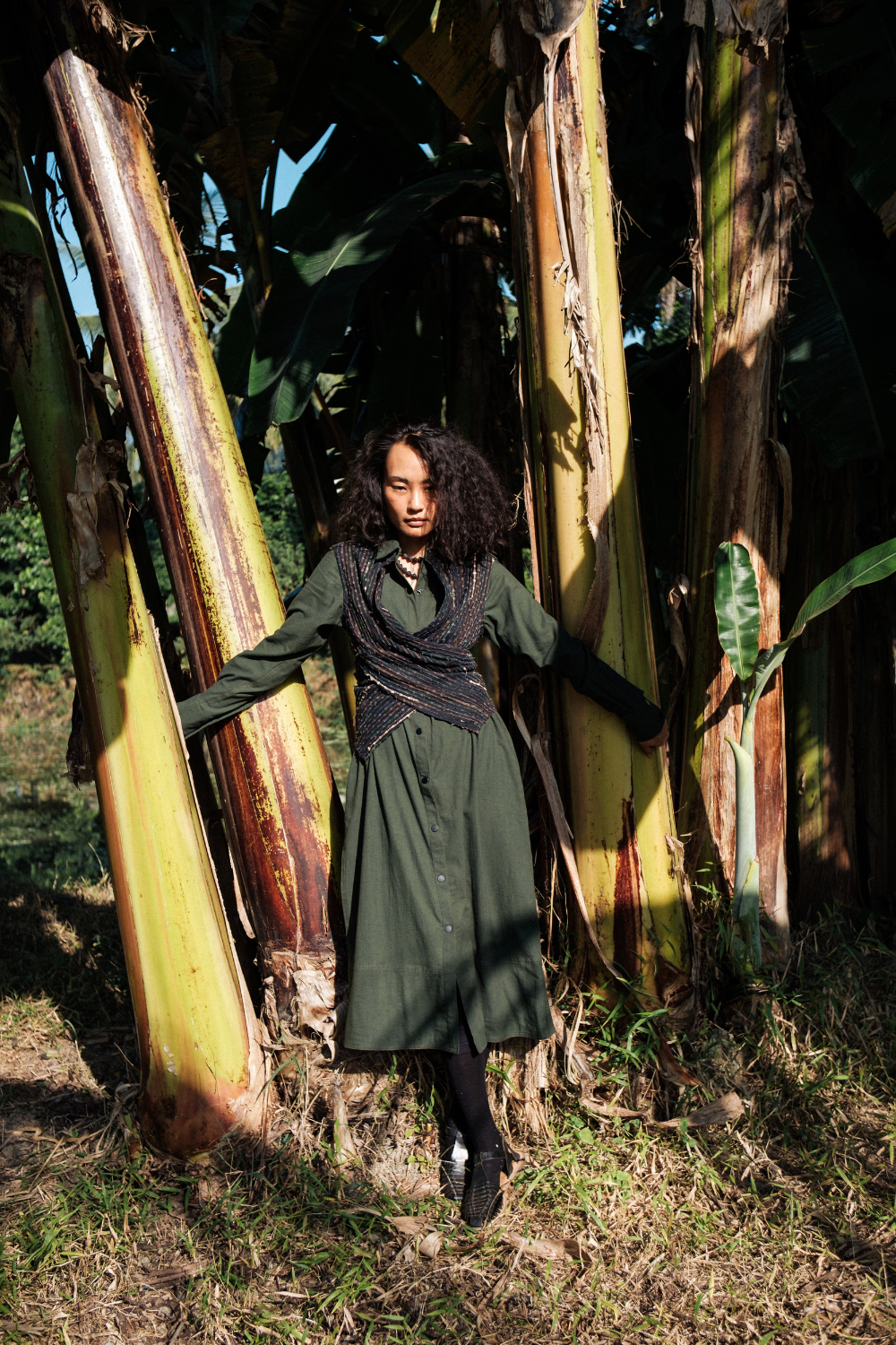 Charmee’s work doesn’t chase seasonal novelty. Instead, she builds garments through the lens of regenerative thinking: plant-based fibres, non-toxic dyes, biodegradable materials, conscious pattern-making, and silhouettes designed to circulate, not accumulate. Every piece begins with the question, “How lightly can we live?”